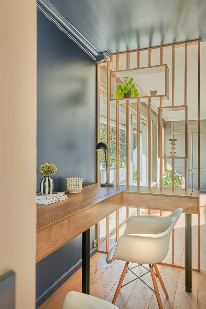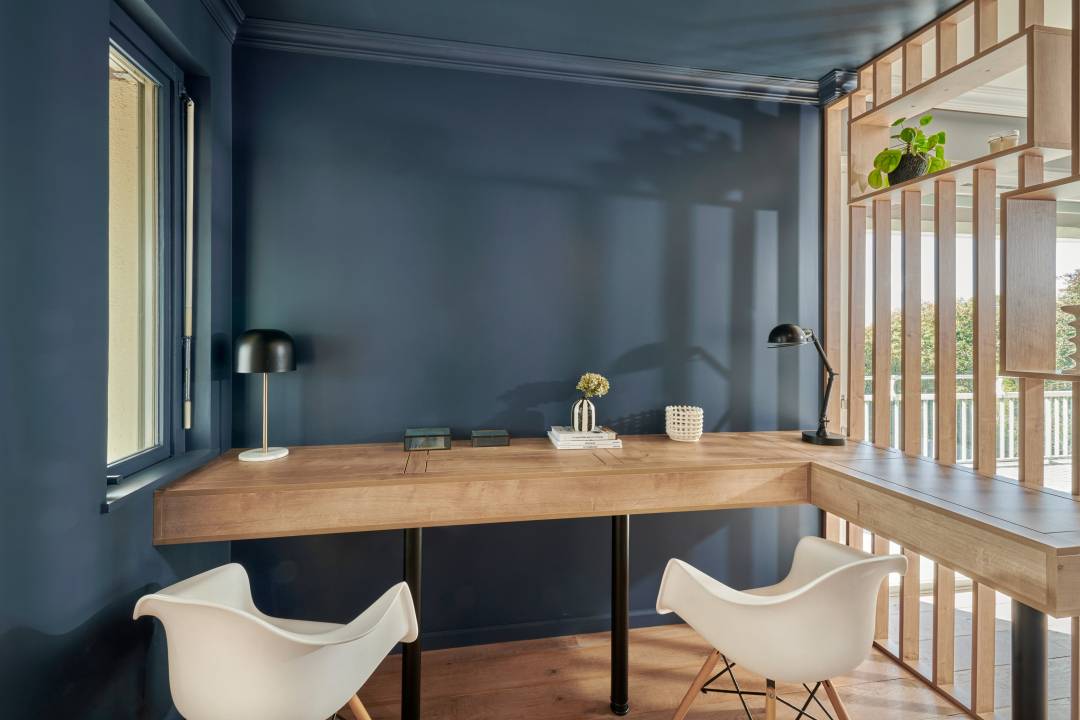 Création d'un espace bureau pour deux personnes qui sait se faire oublier au sein de la pièce de vie