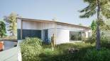 Au cœur d’un nouveau lotissement à trois minutes en vélo de la plage du Bouil, cette construction neuve interprète et reprend les codes singuliers de l’architecture littorale locale. Son implantation toute en longueur, en limite de propriété, permet à chaque pièce de profiter des meilleures orientations sur le jardin au Sud, et rappelle la typologie caractéristique de longère qui a donné son nom à la ville. Il se dessine une fois la porte d’entrée passée une grande pièce de vie avec cuisine, qui donne sur une buanderie et un garage. La partie nuit est desservie par une coursive intérieure éclairée par une suite d’ouvertures verticales, et regroupe trois chambres ainsi qu’une salle d’eau.