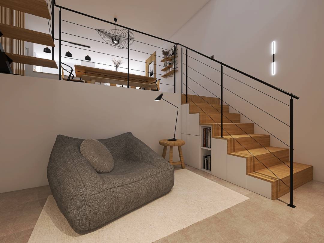 Les demi-niveaux ont été exploités pour optimiser l'utilisation de l'espace, offrant ainsi une fonctionnalité maximale à cet appartement. De plus, les espaces de service ont été réaménagés, ajoutant ainsi une valeur supplémentaire à ce lieu rénové.