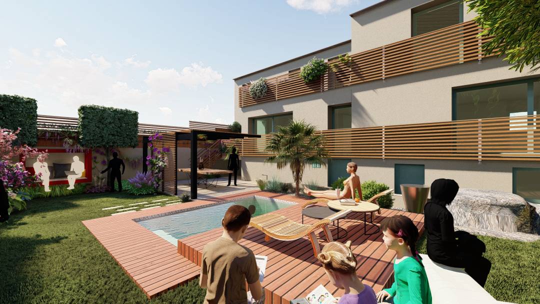 Ce jardin urbain à Malakoff représente un projet captivant axé sur l’intimité et le design contemporain. La création de ce petit espace extérieur a impliqué activement chaque membre de la famille, y compris leur chienne, pour offrir une oasis personnelle. La piscine devient le cœur de ce jardin, entourée de clôtures en bois de Padouk pour la sécurité et le style. Une pergola sur mesure, totalement imaginée et conçue par Créartmonie, alliant métal et bois, ajoute une touche aérienne, offrant intimité et ombrage avec des éclairages intégrés. L’harmonie se trouve dans chaque détail : un local technique discret, des revêtements en grès cérame pour l’élégance, des éclairages de Simes et Karman pour sublimer le paysage, des plantations sélectionnées minutieusement et des pierres de rivière pour un contraste saisissant. Ce jardin résulte d’une collaboration étroite, capturant l’intimité moderne et l’élégance. Chaque élément a été pensé pour répondre aux besoins de la famille, créant ainsi un espace intime, moderne et élégant, apprécié par tous, même par leur chienne grâce à son hublot spécial dans la clôture.