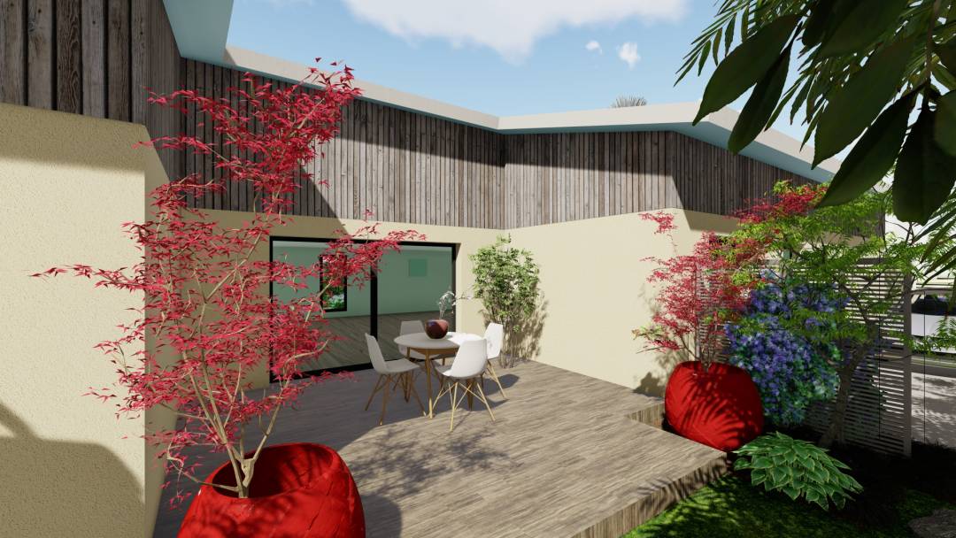 Le Projet Gujan, mené par Créartmonie Conception Paysages, est le fruit d’une collaboration en deux étapes avec un couple de collectionneurs de végétaux atypiques. Deux ans après la première réalisation d’un jardin « Mexicain », les clients ont de nouveau fait appel à Créartmonie pour étendre leur espace extérieur. Les exigences du cahier des charges comprenaient l’insertion d’espèces végétales répertoriées, l’intégration d’un spa, l’exploration de thématiques végétales variées (jardin japonais, jardin exotique, jardin méditerranéen), et la création de séparations visuelles entre les différentes zones, notamment la maison principale et l’Airbnb niché au fond du jardin.