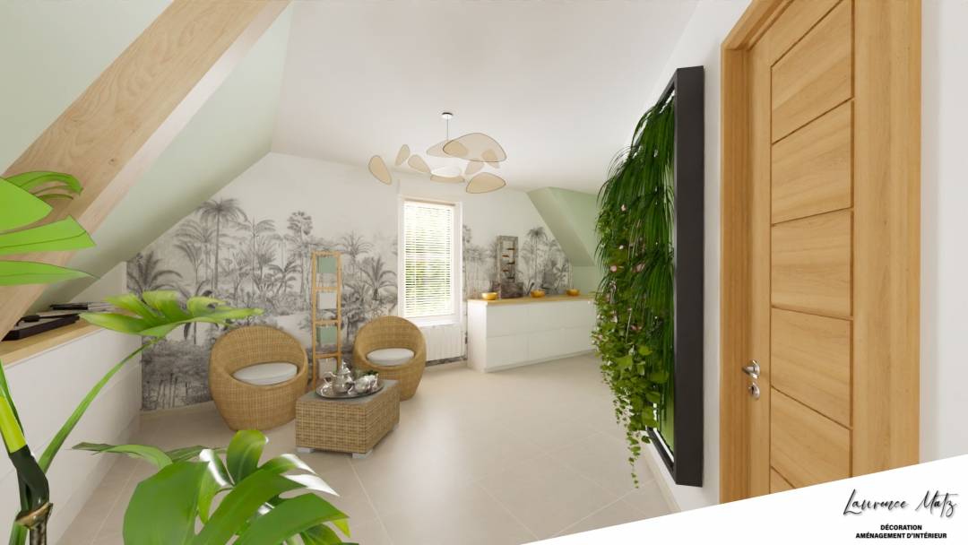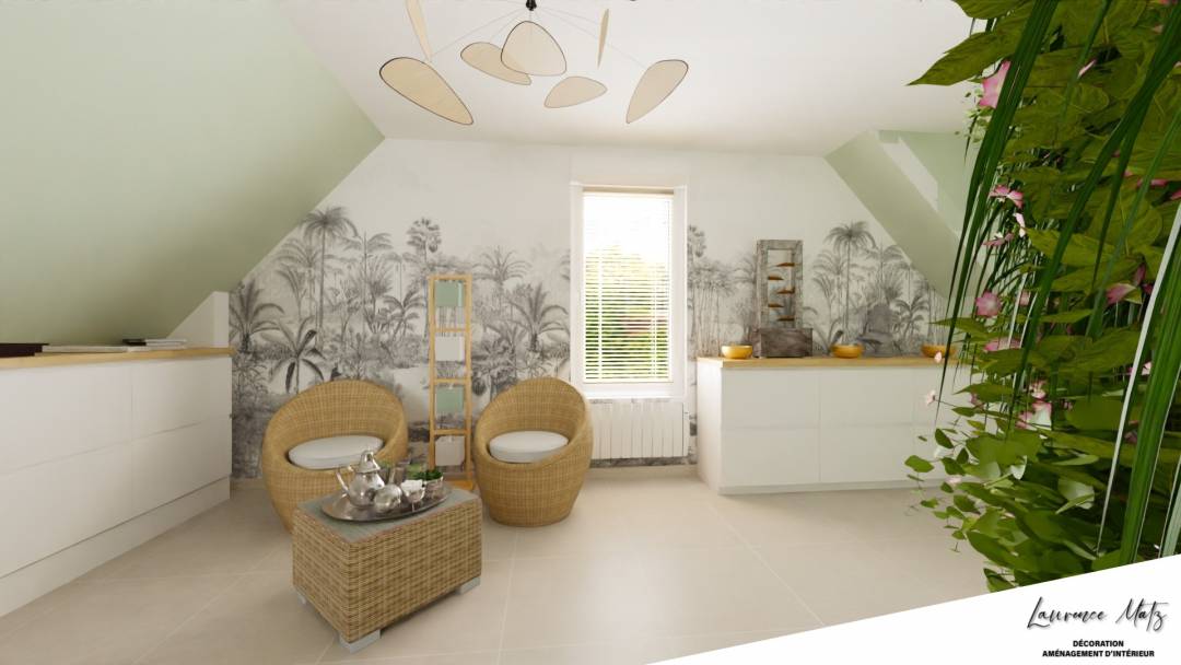 Accompagnement Aménagement & Décoration d'un espace détente avec du rangement supplémentaire.