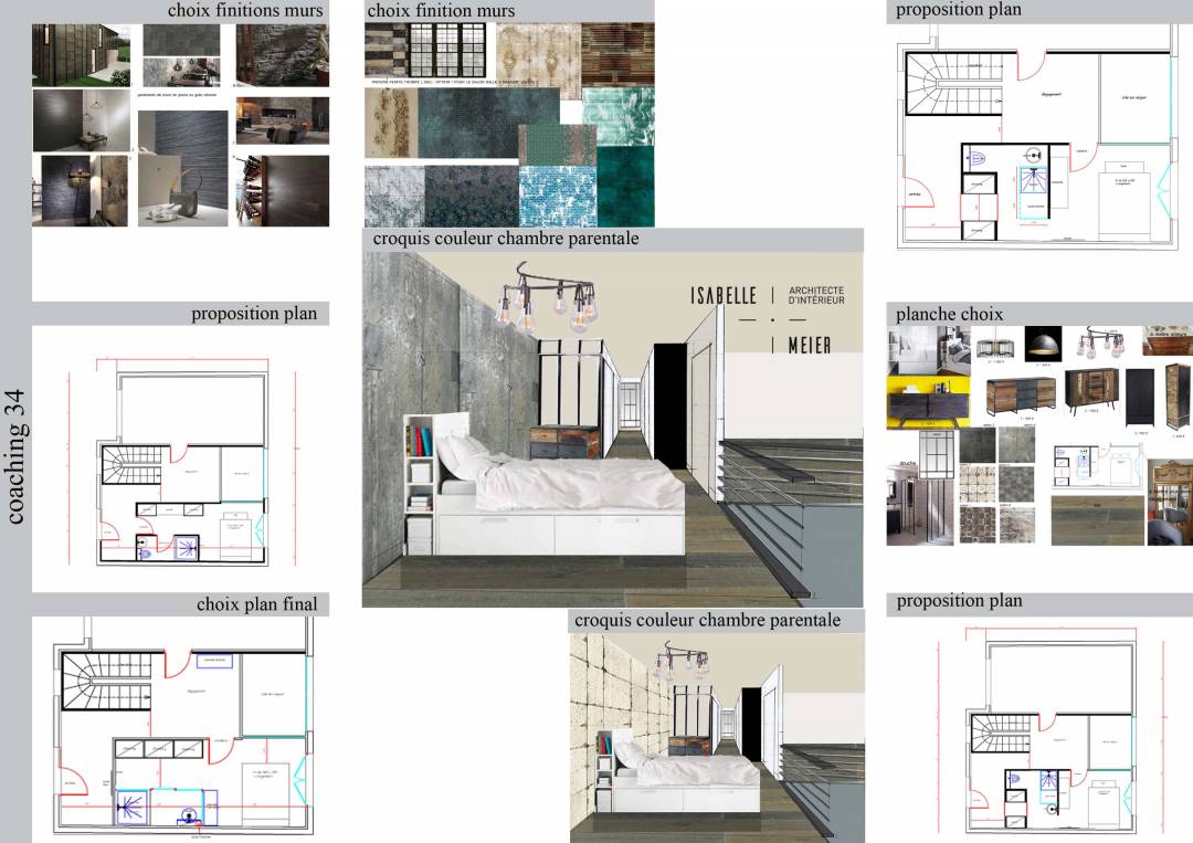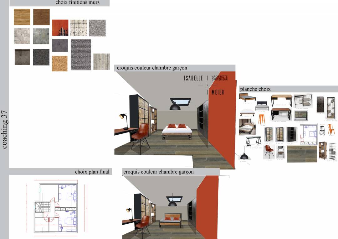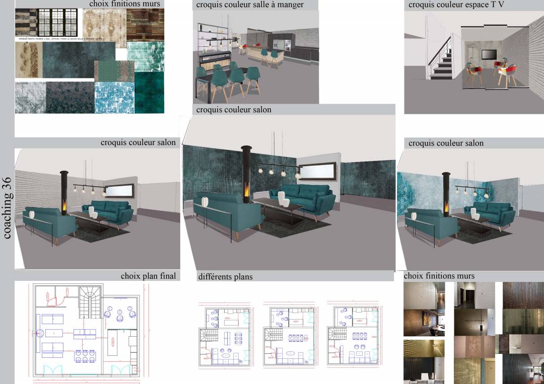 saisie des plans élévations et coupes , aménagement , choix du mobilier , des matériaux et couleurs , croquis 3 d , liste d'achats , suivi technique