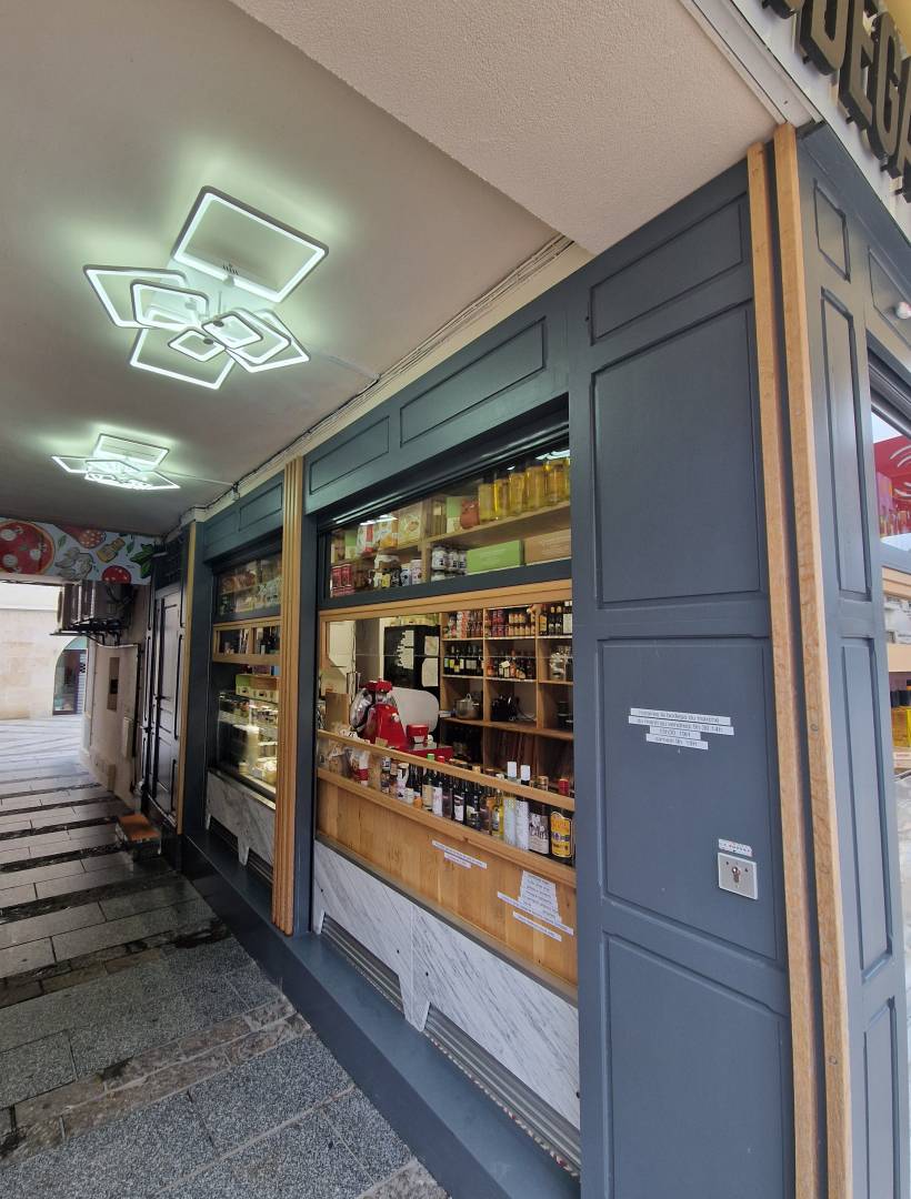 Le projet vise à effectuer une rénovation complète d'un commerce alimentaire existant, avec pour objectif principal la mise en place de gagner de la place pour les salariés et retrouver l'ambiance des marchés couverts.  Désormais, l'accès à l'intérieur est reservé aux employés, et toutes les transactions s'effectuent depuis l'extérieur, à travers une zone aménagée sur la rue et le passage couvert. Les larges vitrines en façade offrent une visibilité directe sur les produits, favorisant ainsi une expérience transparente pour les clients. Une attention particulière a été portée à l'amélioration esthétique des façades, intégrant des éléments décoratifs tels que des moulures et des luminaires, tout en mettant l'accent sur l'accessibilité et la visibilité des produits. L'aménagement intérieur revêt une importance équivalente, visant à créer un espace ergonomique et fonctionnel pour le personnel, tout en assurant la disponibilité de tous les équipements nécessaires. Des présentoirs sur mesure ainsi que des plans de travail adaptés ont été conçus pour répondre aux besoins spécifiques du commerce. Du stade de la conception intérieure et extérieure sur plan, jusqu'à la réalisation des travaux et l'inauguration du nouvel espace commercial, nous avons été impliqués à chaque étape du projet.