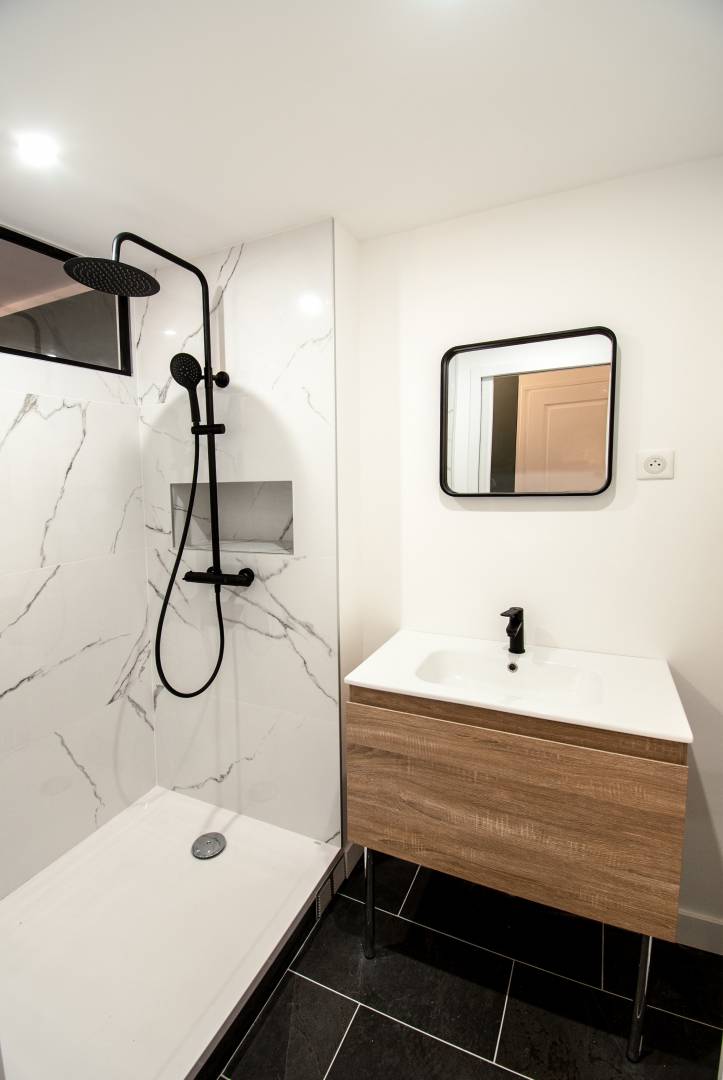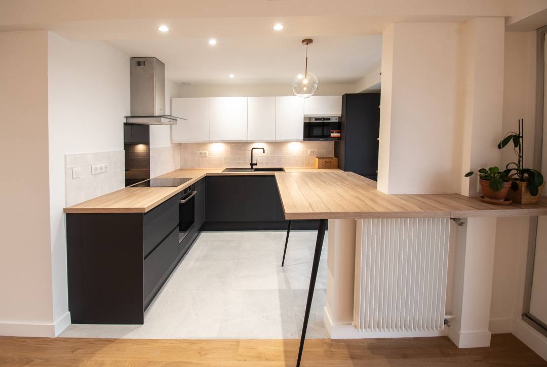 Les pièces et les distributions des espaces ont été complètement modifié et revu selon le mode de vie des clients.  Afin d'agrandir la pièce à vivre et de séparer les espaces "jour" et "nuit", un mur porteur a été ouvert afin de créer une cuisine ouverte sur le séjour. L'appartement comprend : Un séjour très lumineux avec cuisine ouverte, une belle chambre parentale avec dressing sur mesure et salle d'eau, une deuxième chambre avec dressing sur mesure, une salle de bain avec baignoire, un wc séparé et une grande entrée.