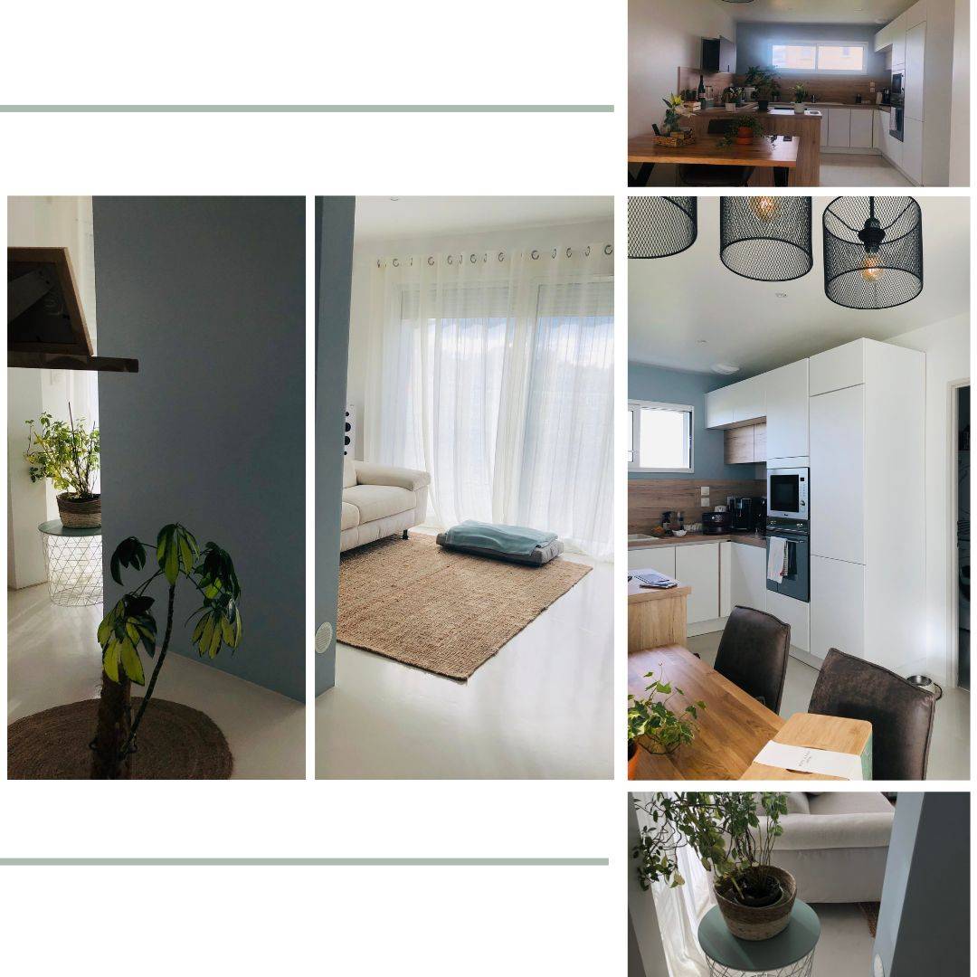 Donner vie aux plans de constructeurs pour aménager une pièce de vie complète et une suite parentale dans cette future maison. Pour ce projet particulier, toute la phase de conception a été réalisée à la main en perspective. Nous avons imaginé un espace de vie entièrement ouvert, comprenant une cuisine, une salle à manger attenante et un séjour. Dans un esprit épuré et lumineux, toute la pièce de vie s’organise autour du quotidien de la famille. La suite parentale, quant à elle, offre un espace privé tropical, véritable havre de paix pour les futurs habitants. Un an plus tard, le projet prend vie. Un grand merci à M&S pour leur confiance, et un clin d’œil à S. pour ses choix décoratifs qui ont complété la réalisation du projet.