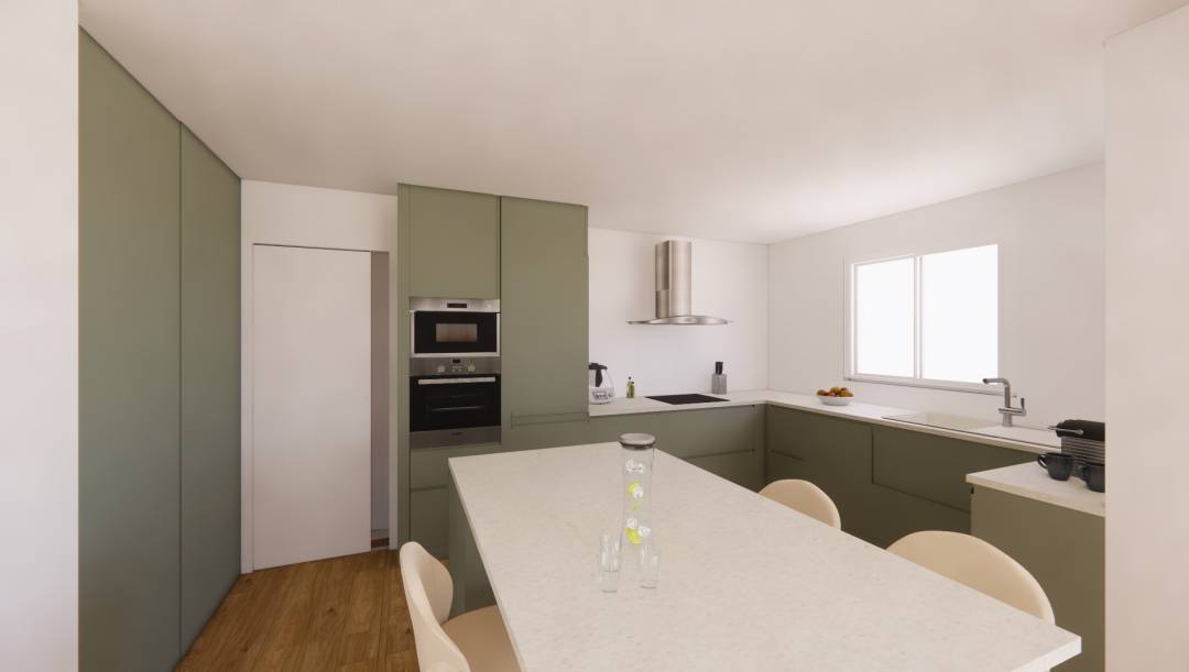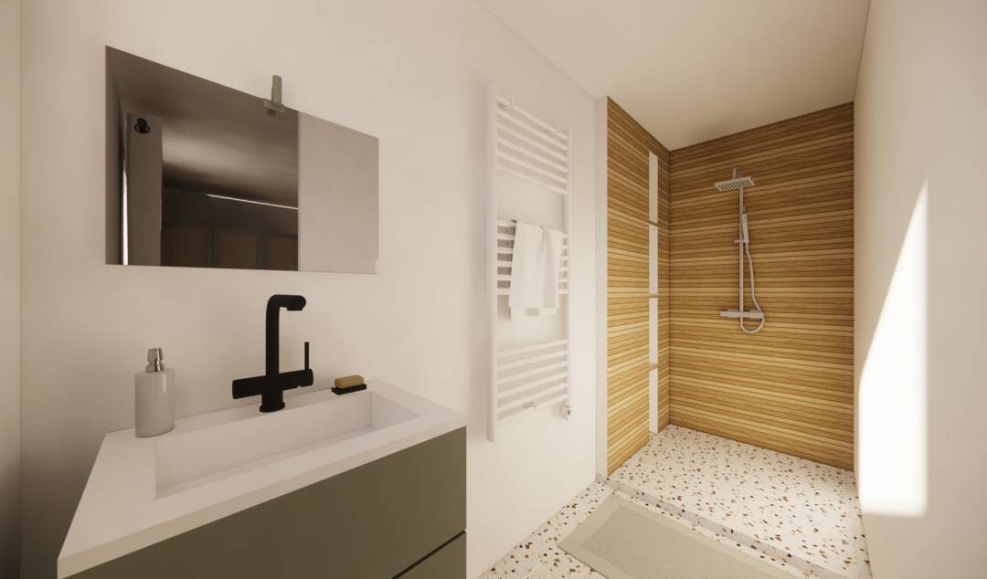 Les clients ont fait appel à moi pour rénover entièrement le rez-de-chaussée de leur maison familiale. Ils m’ont fixé 3 objectifs principaux : aménager une vraie entrée, agrandir la cuisine et créer une buanderie indépendante. L’espace du rez-de-chaussée a été repensé de manière à optimiser la surface disponible dans son ensemble tout en définissant des fonctions bien précises pour chaque pièce.  Une verrière est installée à l’entrée afin de séparer l’entrée du salon tout en laissant passer la lumière. Sous l’escalier, un placard sur-mesure a été imaginé afin d’organiser des rangements adaptés pour les chaussures et manteaux de l’entrée.  La cuisine a été agrandie et entièrement repensée afin d’y intégrer un îlot central convivial, de nombreux rangements et un plan de travail dédié au petit électroménager. Une vraie buanderie a été créée dans le fond du garage, facilement accessible par la cuisine et entièrement isolée. Les clients sont ravis des nouveaux plans, car ils répondent à leurs besoins. C'est exactement la mission que je me suis fixée, être à l'écoute de mes clients. Mon approche est avant tout pragmatique : la maîtrise technique de l’espace alliée à la dimension humaine.J’aime créer des intérieurs à la fois pratiques, chaleureux et à l’image de leurs habitants.