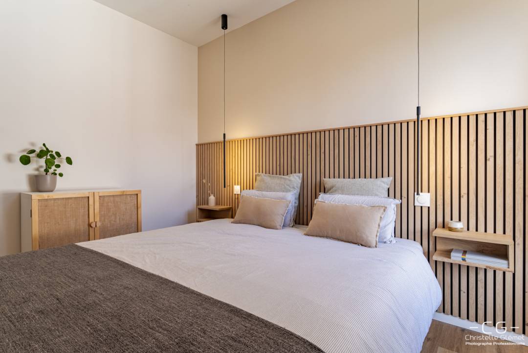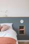 Chaque espace possède son propre univers, de la cuisine vert d'eau avec ses notes dorées, au salon plus contemporain flirtant en un bleu ardoise et des notes peps de cuivre, aux chambres plus épurées.