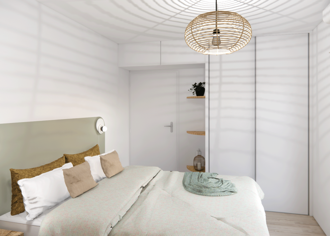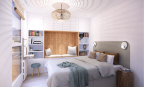 Réalisation d'un meuble sur mesure pour une chambre. L'objectif étant d'optimiser l'espace de ce petit appartement.