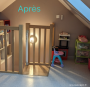 Les seules contraintes étant l’emprise des murs du bâtiment existant, beaucoup de possibilités d’agencement ont pu être étudiées. En définitive nous avons même réussi à créer une petite chambre d’appoint sous combles pour les enfants ou pour 2 personnes supplémentaires en lits séparés.