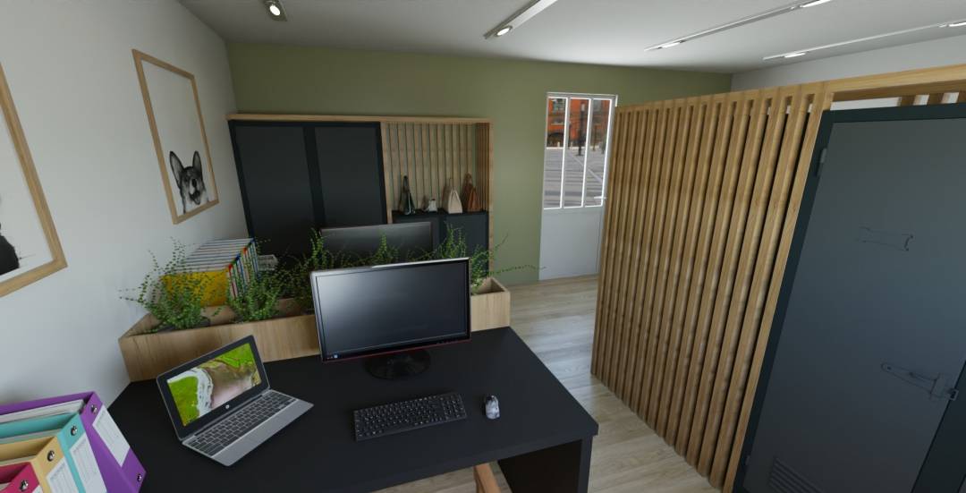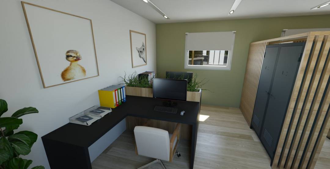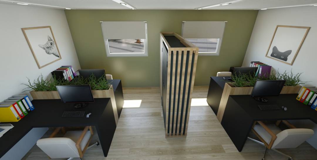 Le projet "Un bureau pour 4" est une création pour une directrice, Elle souhaitait un espace agréable à vivre pour ses salariés avec une touche d'humour ! Création de Fleur LAIR Intérior Créa't