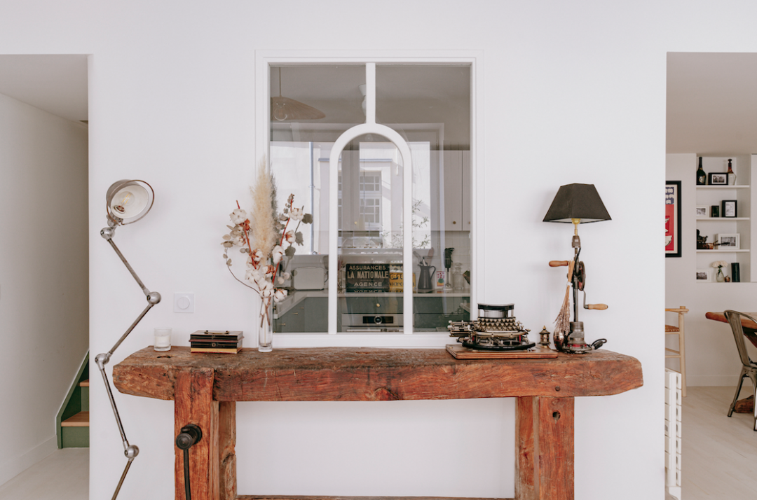 Rénovation globale d'une maison de deux étages. Au départ, il a fallu tout déposer et partir de zéro car l'état était très vétuste et la disposition des pièces trop compliquée. Nous avons réussi à combiner, entrée, séjour, cuisine, buanderie au rez-de-chaussée ; trois chambres et une salle de bain enfants au premier et une suite parentale au second étage.