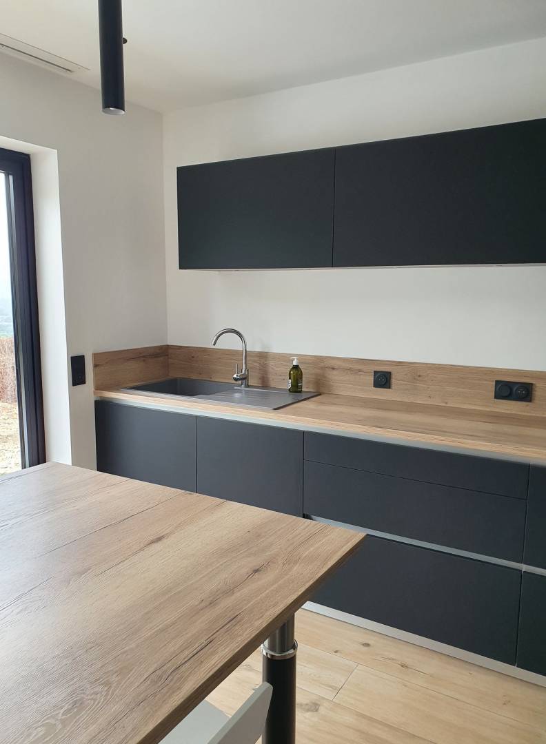 Le but de ce projet a été d'imaginer un nouveau lieu de vie pour mes clients en suivant leur demande : garder les anciens meubles, intégrer une cuisine contemporaine, ne pas utiliser de couleur autres que le blanc et le noir.