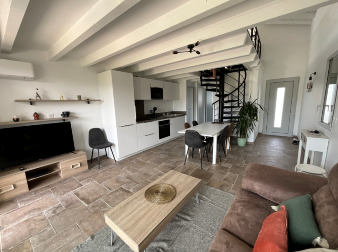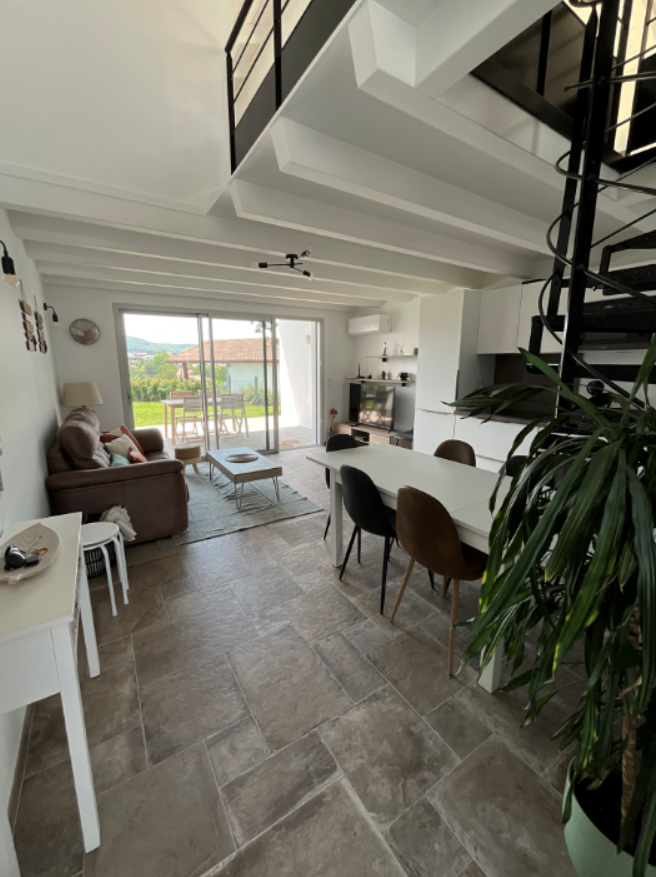 Très joli projet de décoration et d'optimisation d'espace avec la création de la mezzanine (qui n'était pas prévue dans les plans initiaux de l'architecte);  pour cette maison de campagne, destinée à la location saisonnière de curiste. Les propriétaires voulaient combiner matériaux pérennes et adaptés à la location tout en gardant du cachet.