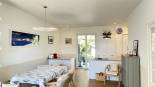 Optimisation et rénovation de ces 3 pièces. Résultats : une ambiance générale plus lumineuse et dans les tons bord de mer comme désiré par les habitants de la maison, un salon aux rangements multiples grâce au meuble bibliothèque sur-mesures, une salle à manger où on peut circuler et qui peut recevoir plus de convives si besoin grâce à la banquette intégrée au meuble et à une table extensible, une cuisine lumineuse avec de nombreux rangements et plus de plans de travail, un nouvel espace bureau discret et pratique, et enfin un nouvel espace petit-déjeuner avec vue sur jardin !