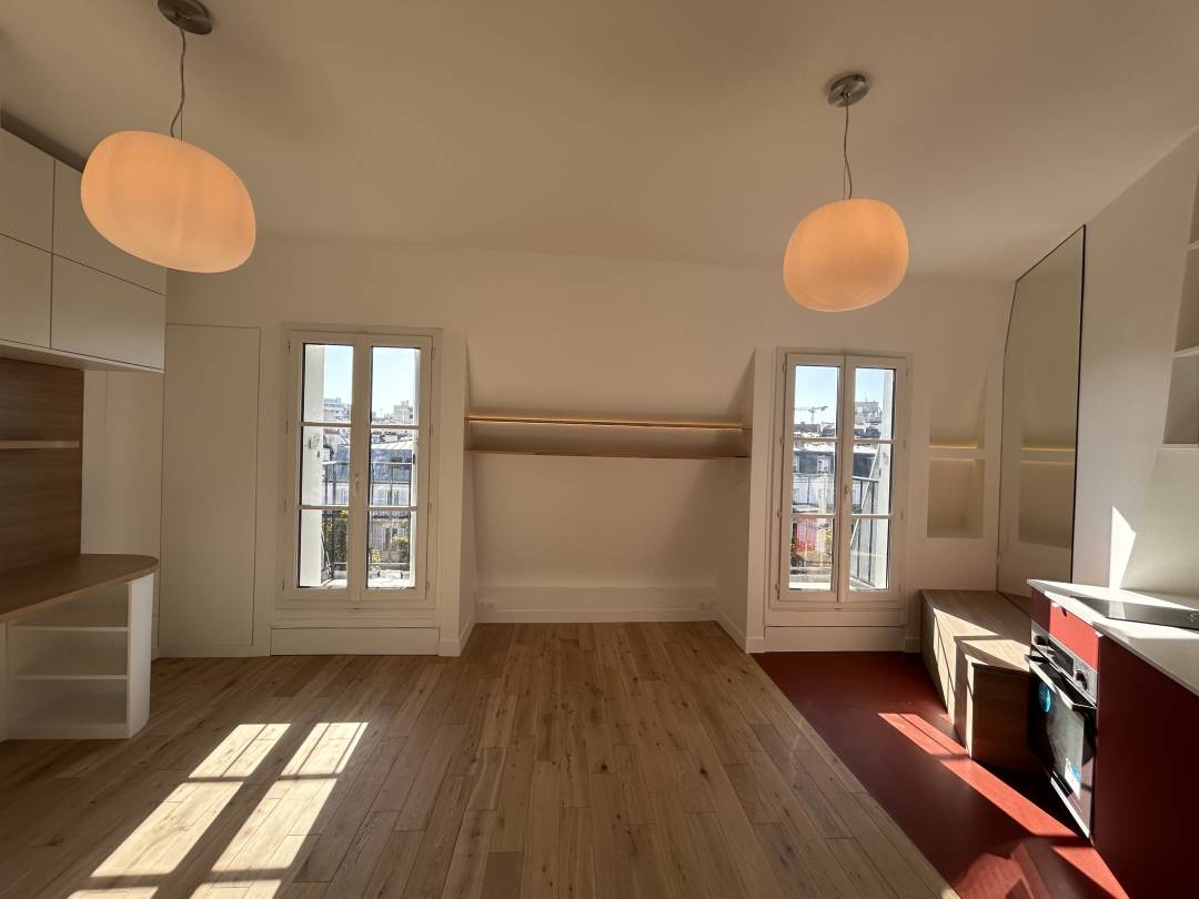 Une chambre de bonne rénovée en studio comtemporain sous les toits à Paris