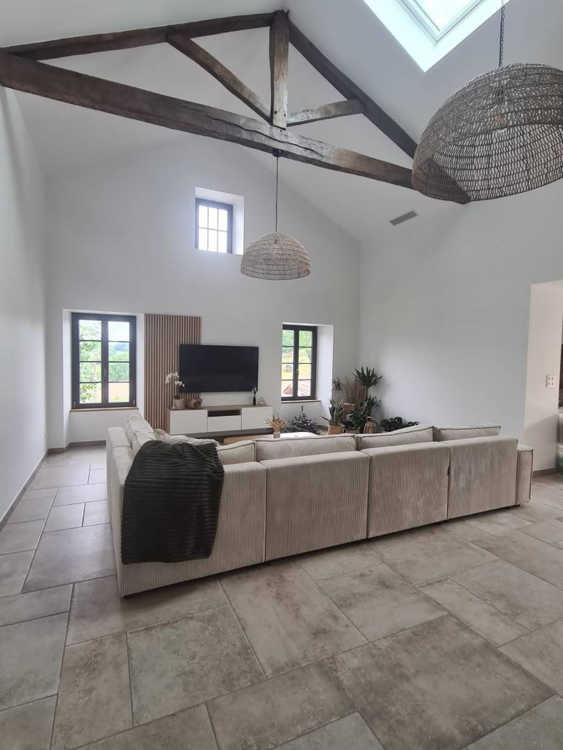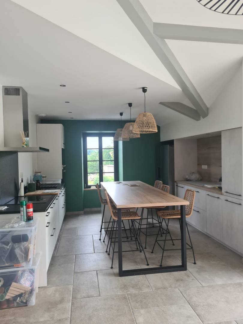 Rénovation d'une ferme basque pour y accueillir une jeune famille. On repense donc l'intérieur en gardant des éléments nobles et authentiques pour créer un nouveau cocon, doux, chaleureux. De la pierre, du bois, un vert olive et des tissus pour réhausser le charme de cette rénovation. Les chambres sont plus colorées, pour apporter du pep's à l'intérieur, de la gaieté.