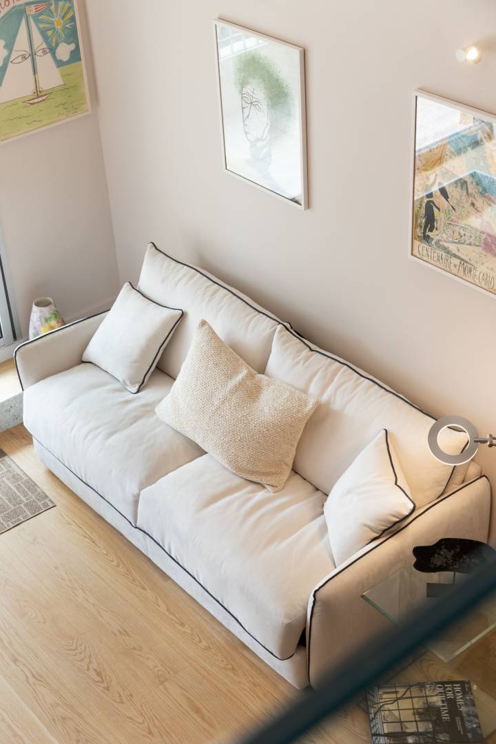 Intervention : Rénovation globale de ce pied-à-terre avec mezzanine. Attentes : Repenser l'appartement en dégageant de l'espace sur le plan horizontal. Apporter de la fluidité et rendre ce lieu chic et de bon goût.