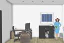 Agencement d'une ancienne salle de danse en 2 locaux: un bueau et un cabinet d'ostéo avec cuine et SDE en commun.