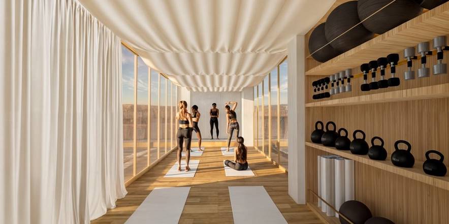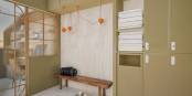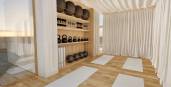 Dans le cadre de ce projet, nous avons conçu un espace public mobile intégré dans des containers, destiné à offrir un service aux besoins d’un village. Notre choix s’est porté sur une salle de yoga, accessible aux habitants locaux et des communes avoisinantes. La structure, limitée à 50 m², a été pensée pour être facilement déplaçable, tout en respectant des exigences techniques et ergonomiques . La structure s’organise sur deux niveaux. Au RDC, nous avons prévu une salle de yoga équipée d’une estrade pour le professeur, un bureau d’accueil, et un sanitaire accessible aux personnes à mobilité réduite. À l’étage, un container est dédié au stockage et une salle de pause pour les employés, avec la possibilité d’être transformée en salle de massage pour diversifier les services. Chaque mètre carré a été optimisé, avec un espace de rangement pour le matériel. La décoration intérieure propose deux ambiances distinctes : une atmosphère cocooning pour les cours axés sur la relaxation et une ambiance pop dynamique pour les séances plus énergiques. Ces ambiances sont modulables grâce à un jeu de rideaux et d’éclairages LED, permettant d’adapter l’espace aux différentes énergies recherchées. Ce projet répond aux besoins fonctionnels et esthétiques tout en offrant une solution flexible et accueillante pour un service de bien-être itinérant.