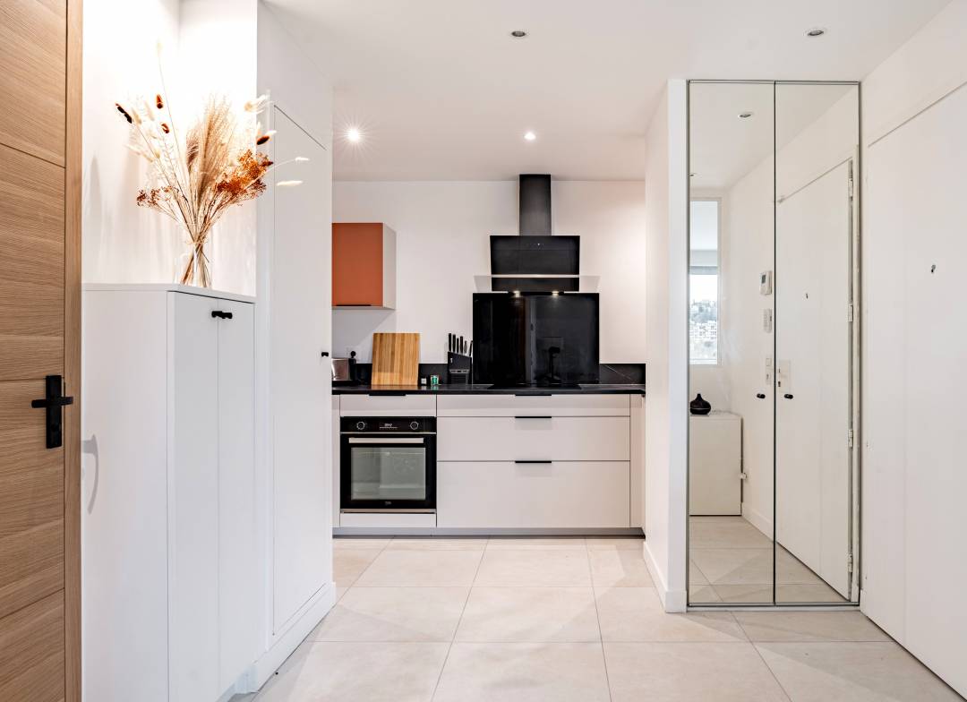 Partir d'une page blanche pour cet appartement offrant une belle vue sur la Seine. Les volumes ont été repensés afin de créer des espaces plus harmonieux et adaptés aux besoins des occupants. De nombreux rangements ont été intégrés, apportant une lumière agréable et un espace convivial où les clients peuvent désormais pleinement profiter de leur intérieur.