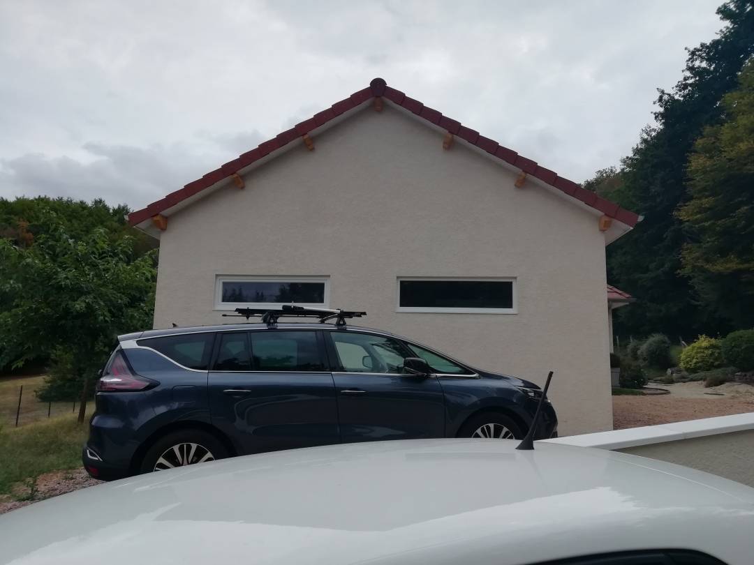 Pour ce projet les clients souhaitaient construire un garage d’environ 60 m². Ma mission était de concevoir ce garage, réaliser la déclaration préalable de travaux en vue du dépôt en mairie et réaliser les plans d’exécutions pour les différents artisans. Ce projet a été réalisé en partenariat avec la maison des travaux de Chalon-sur-Saône. Félicitation au charpentier qui à réalisé un travail d'une grande qualité.