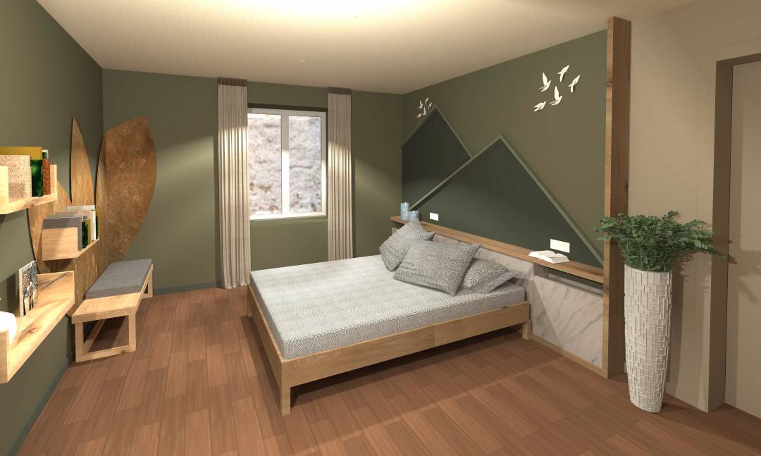 Une belle étude pour une chambre paretale aliant l'esprit nature et contemporain