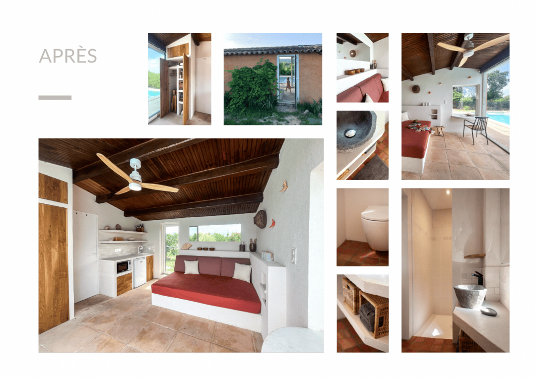 Après avoir étudié différentes options pour disposer d’une petite unité de vie indépendante dans leur propriété familiale, Thierry et Magali m’ont demandé de les aider à rénover leur poolhouse pour le rendre ponctuellement habitable.