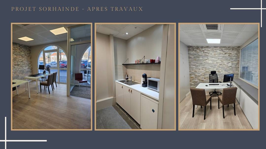 🏢 Projet Sorhainde : Rénovation d’une agence d’assurance par AC Décoration ✨ Pour ce projet, l’objectif principal était de transformer une agence d’assurance en un lieu à la fois agréable, chaleureux et authentique, répondant aux attentes du propriétaire. Ce dernier souhaitait offrir à ses clients et collaborateurs un environnement accueillant et fonctionnel. 🎯 Les attentes du client : Le propriétaire a opté pour notre Pack Rénov, un accompagnement clé en main pour : Gérer le projet de A à Z en lui épargnant le stress des travaux. Mettre à profit notre expertise en décoration pour choisir des éléments à la fois esthétiques et pratiques. Superviser les achats et assurer une gestion optimale des ressources. Suivre l’évolution du projet avec des échanges réguliers et des photos détaillées. 🏗️ Les réalisations : Rénovation complète des espaces : Chaque zone de l’agence a été repensée pour allier design et fonctionnalité. Ambiance chaleureuse et authentique : Utilisation de matériaux nobles comme le bois, associés à des teintes douces et naturelles pour créer un cadre professionnel et accueillant. Optimisation de l’agencement : Une réflexion approfondie a permis de maximiser l’espace et d’améliorer la circulation dans les lieux, pour un meilleur confort des clients et collaborateurs. Décoration sur mesure : Sélection d’éléments décoratifs alliant modernité et tradition pour refléter les valeurs de l’agence. ✨ Résultat : Une agence transformée en un véritable cocon professionnel, où il fait bon travailler et recevoir. Le propriétaire peut désormais accueillir ses clients dans un cadre à son image : élégant, accueillant et authentique.