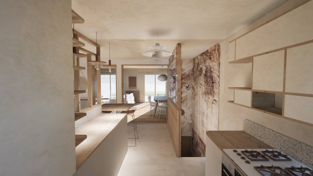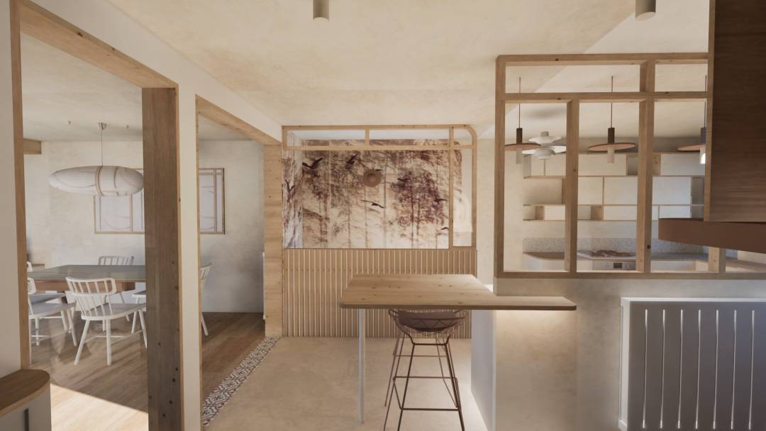 RÉNOVATION INTÉRIEURE D'UNE MAISON DE VILLE Réorganiser l'agencement afin de moderniser et fluidifier l'espace Un jeune couple grenoblois a sollicité l’atelier afin de rénover l’intérieur de leur nouvelle maison des années 2000 située dans le quartier des Eaux-Claires. Cette maison mitoyenne intégrée dans un tissu urbain classique composé d’immeubles et d’habitat de différentes hauteurs possède une parcelle étroite, en longueur et traversante reliée à deux rues de part et d’autre. La commande des clients s’est portée sur le réaménagement du rez-de-chaussée ainsi que la salle de bain à l’étage. Le reste des travaux – étage et combles – interviendra dans une seconde phase. Leur envie principale a été de créer un espace chaleureux, fonctionnel, avec une gestion intelligente des flux afin de se sentir bien chez soi. L’idée de faire appel à un architecte correspond de leur part à une attente esthétique avec une volonté d’apporter une touche artistique et originale tout en ayant un effet épuré avec une sensation d’espace sans surcharger l’ensemble. Le style souhaité est celui se rapprochant de l’esprit scandinave avec des tons clairs et naturels faisant appel à des matériaux tels que le bois, le carrelage, les carreaux ciment et des matières sensorielles et lumineuses. Après divers échanges et options, une version de projet a été affinée afin de répondre au mieux aux goûts et aux usages des clients. Les entreprises prennent le relai afin de budgétiser précisément les éléments clés de l’esquisse.