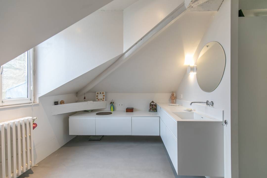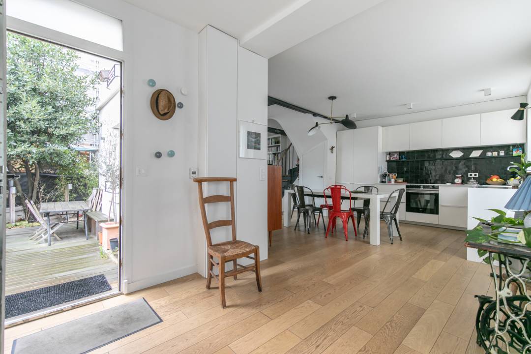 Cette maison datant de 1860 n’avait jamais été entretenue. Elle avait subi une extension partielle dans les années 50. Dans le cadre de la rénovation entreprise par les acquéreurs, entre le ravalement des façades et la réfection de la couverture, une restructuration totale a dû être opérée. En effet, le plan a été éclaté au rez-de jardin afin que la lumière puisse pénétrer de tous les cotés et que la distribution des espaces corresponde au mode de vie actuel. -ouverture des fenêtres autrefois condamnées -modification des accès -reprise en sous-œuvre Le projet final donne lieu à trois niveaux : Le rez-de-jardin composé d’une pièce à vivre avec une cuisine ouverte Le 1er étage composé de deux chambres d’enfants, d’une salle d’eau, de toilettes et d’un palier-bureau. Le 2ème étage composé d’une suite parentale avec une salle de bain, un dressing et un bureau. Les extérieurs ont été aménagés en teck et dans le sous-sol est dédié aux fonctions techniques (buanderie et rangement).