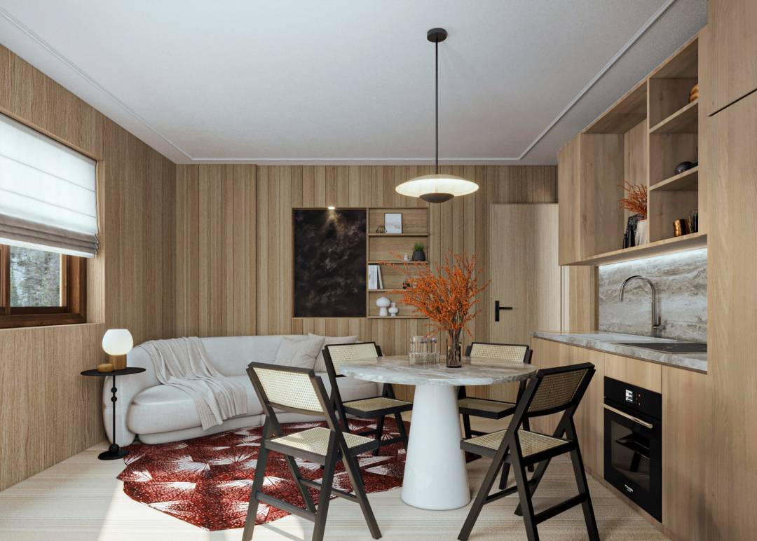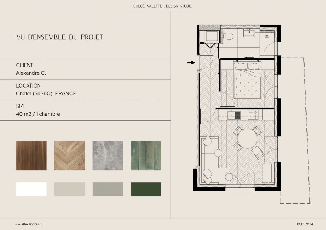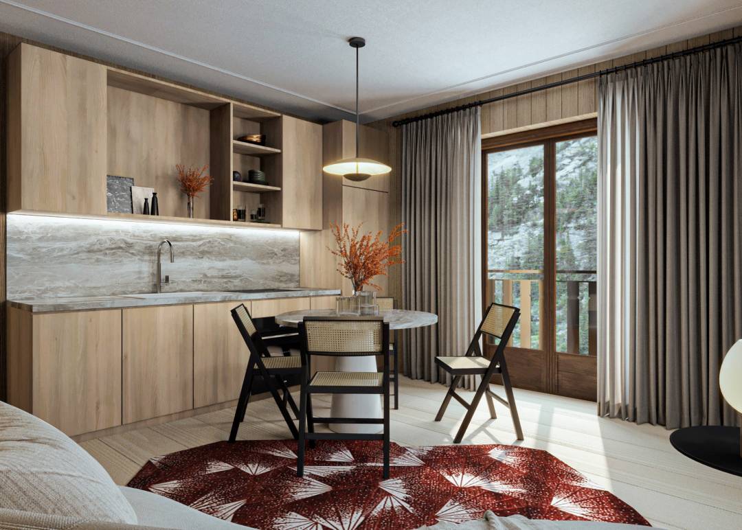 Cet appartement est typique des années 70 et du type de logements construits à la montagne pour les vacanciers à cette époque. La problématique était la suivante: rénover entièrement cette petite surface afin d'en faire, au choix, selon les besoins du propriétaire, une location saisonnière ou un pied à terre. Garder l'esprit montagnard en le modernisant, rendre l'espace pratique et confortable.