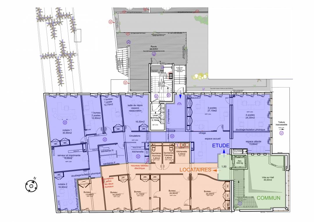 Aménagement d'un étage pour créer une office notariale et des bureaux à la location.