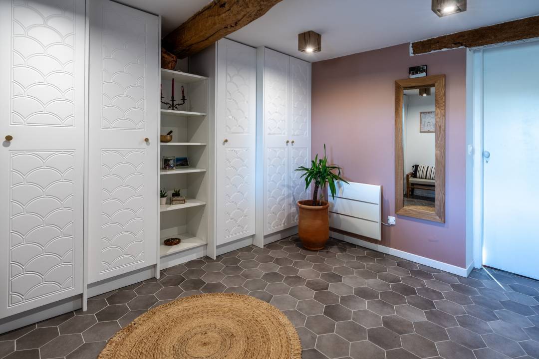 Mon client souhaitait rénover l'entrée de sa maison traditionnelle dans un style bohème chic.