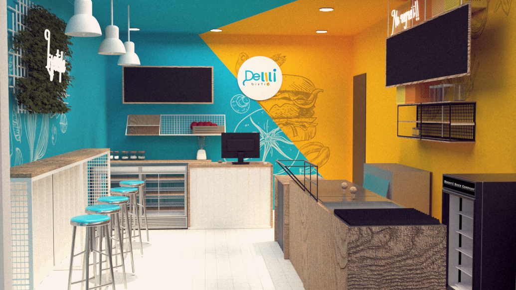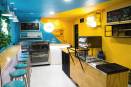Rénovation d'un restaurant à Paris, avec un style unique utilisant des couleurs fortes et vives pour attirer l'attention des clients.