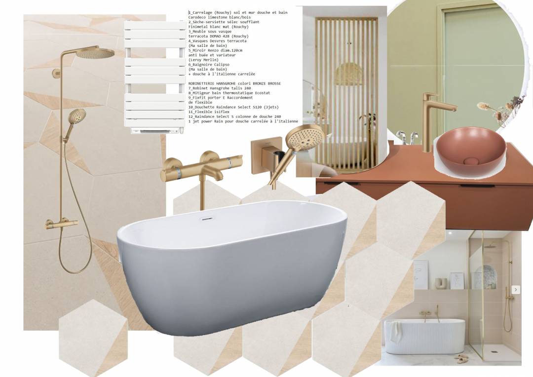 AVANT-APRES La cloison avec la chambre a été démolie afin d'agrandir la salle de bain et de pouvoir ajouter une douche à l'italienne. Tous les appareils sanitaires ont été changés et une douche a été ajoutée. Tout l'ancien carrelage a été déposé et dans un soucis d'économie je me suis raccordée sur les les points d'eau existant et les évacuations. La porte donnant sur le couloir a été changée par une porte coulissante.