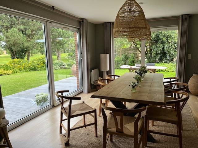 Le petit plus, l'harmonie des tonalité vert mousse et bois clair avec le paysage qui entre dans la pièce.
