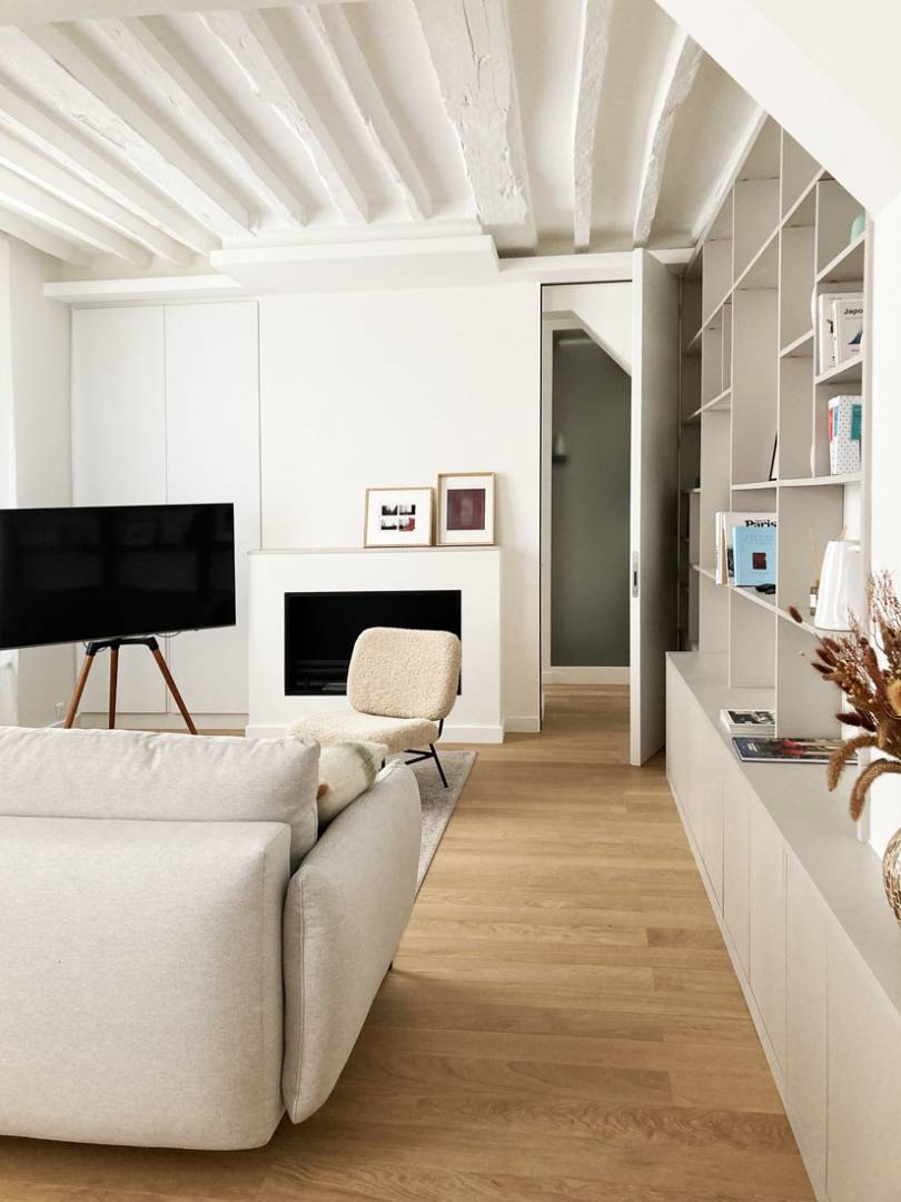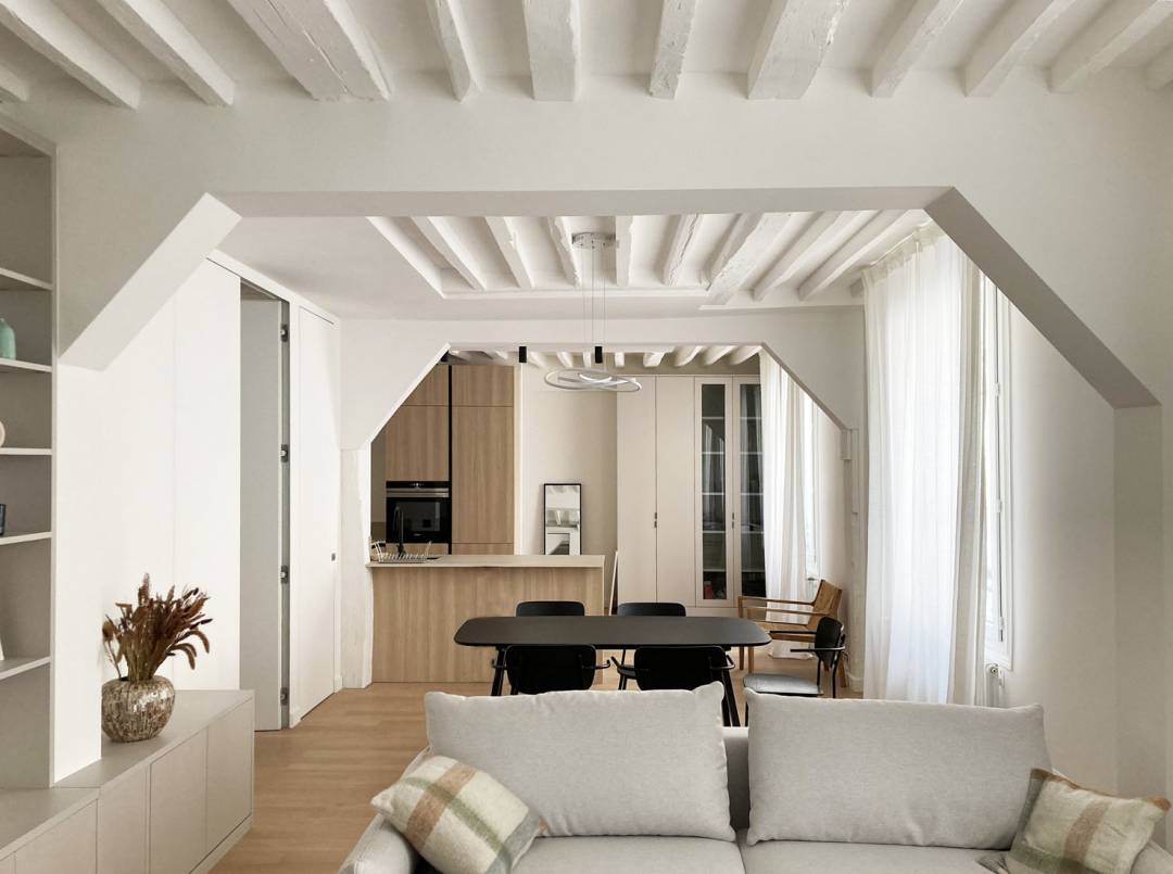 Rénovation complète de l’appartement Bailly 5 Suite à Paris dans un immeuble en structure bois : préservation du charme ancien avec une touche moderne.