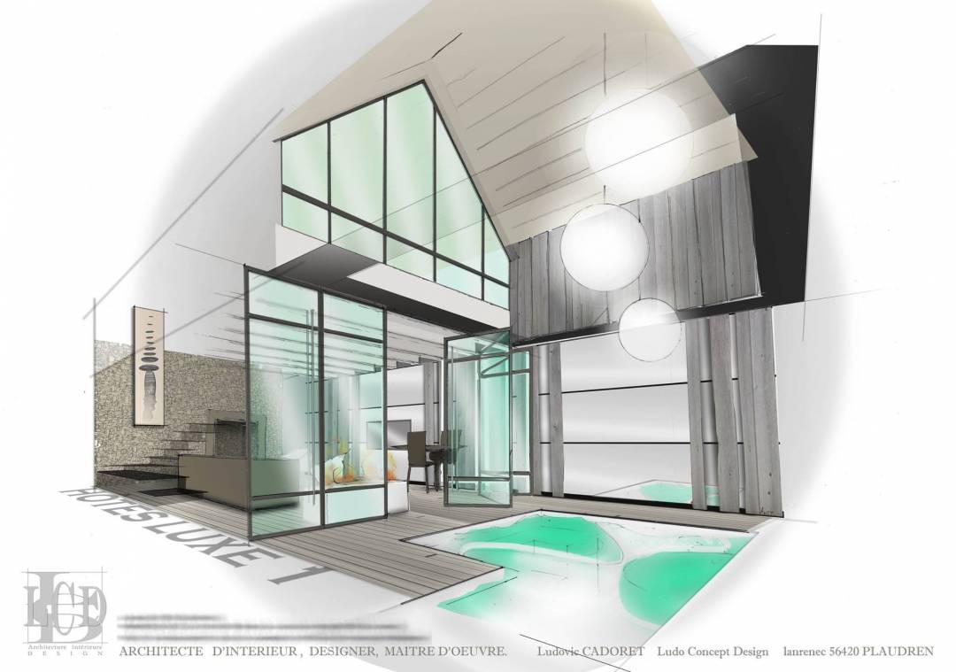 Projet poussé par la technicité pour créer un espace aquatique intérieur. Des espaces vitrés qui délimitent les pièces donnant une illusion de grandeur et laissant la lumière se diffuser. Ambiance apaisante et un éclairage indirect pour une atmosphère chaleureuse offrant un véritable havre de paix en toute saison.