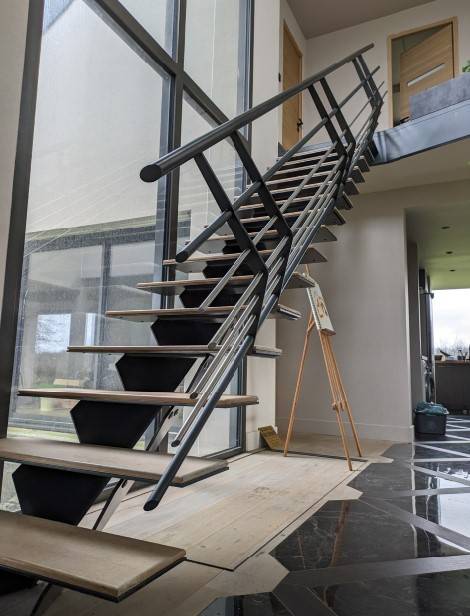Réalisation de cette maison à la demande du client avec des lignes moderne pour l’aménagement de grands espaces. L’apport naturel de lumière sur la totalité des espaces de dégagements est couplé à une ventilation double flux afin de brasser les effets de serre l’été et l’hiver. Peu énergivore, cette maison est conçue pour vivre des moments en famille accompagnée chaleureusement par la continuité intérieure et extérieure.