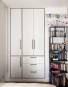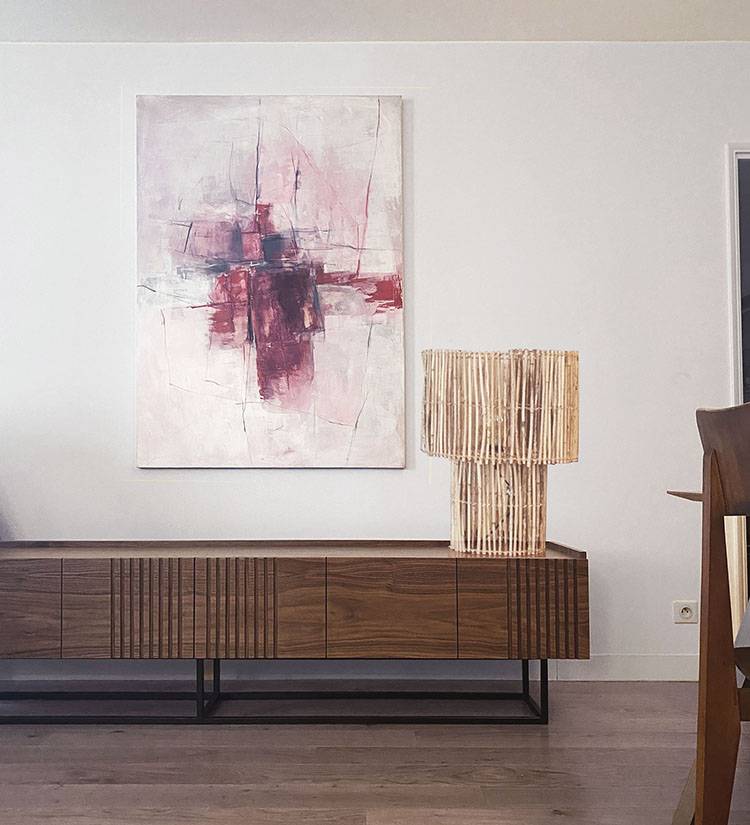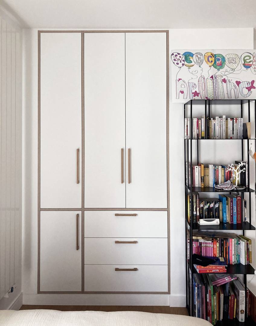 Il y a quelques années, nous avions déjà travaillé sur la décoration de leur ancien appartement. Dans ce nouvel appartement, nos clients ont fait appel à nous pour que nous réaménagions et que nous décorions la chambre de leur fille cadette et sa petite salle d'eau attenante. Ils souhaitaient également décorer leur chambre et que nous trouvions des assises pour leur salon et un meuble TV. Comme nous n'avons pas trouvé de meuble TV correspondant à leurs attentes, nous l'avons dessiné aux dimensions souhaitées et fait fabriqué par notre menuisier.