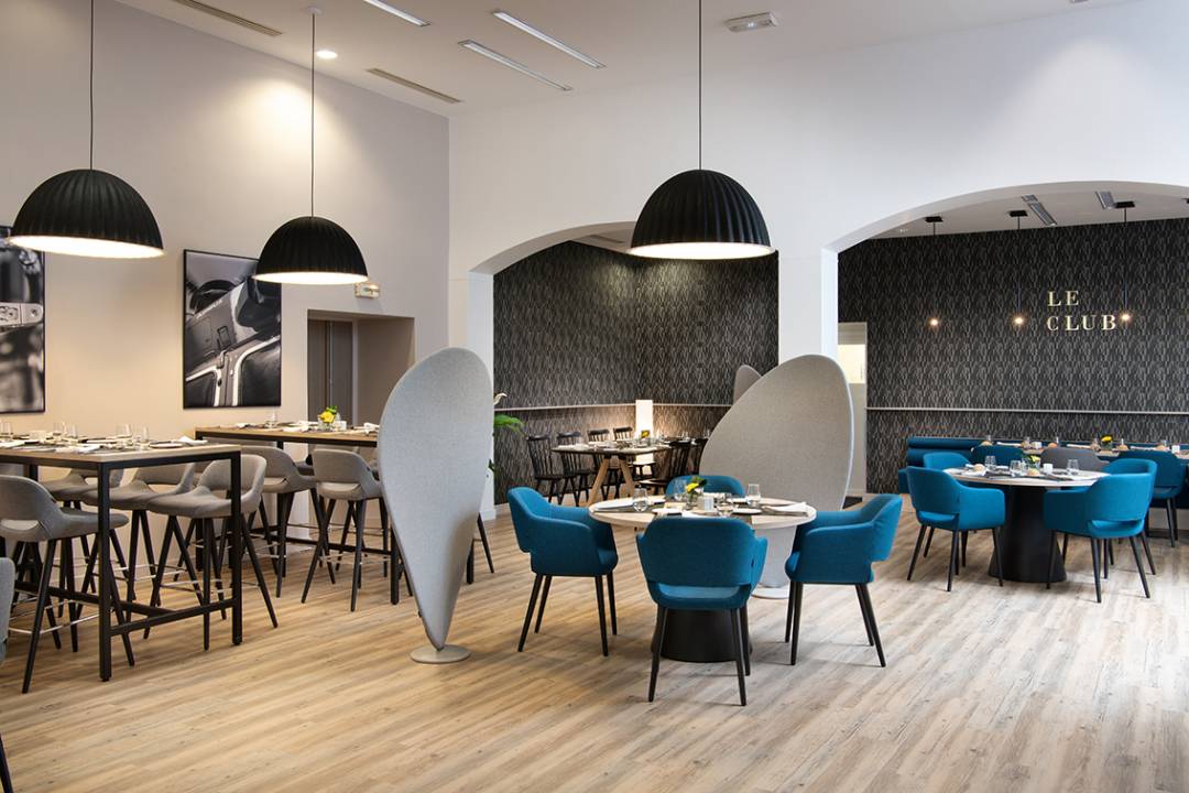 Rénovation et aménagement de la Brasserie Club, des salons club et de la salle VIP. Rénovation globale du lieu. Agencement, choix du mobilier et luminaires, choix des matériaux...