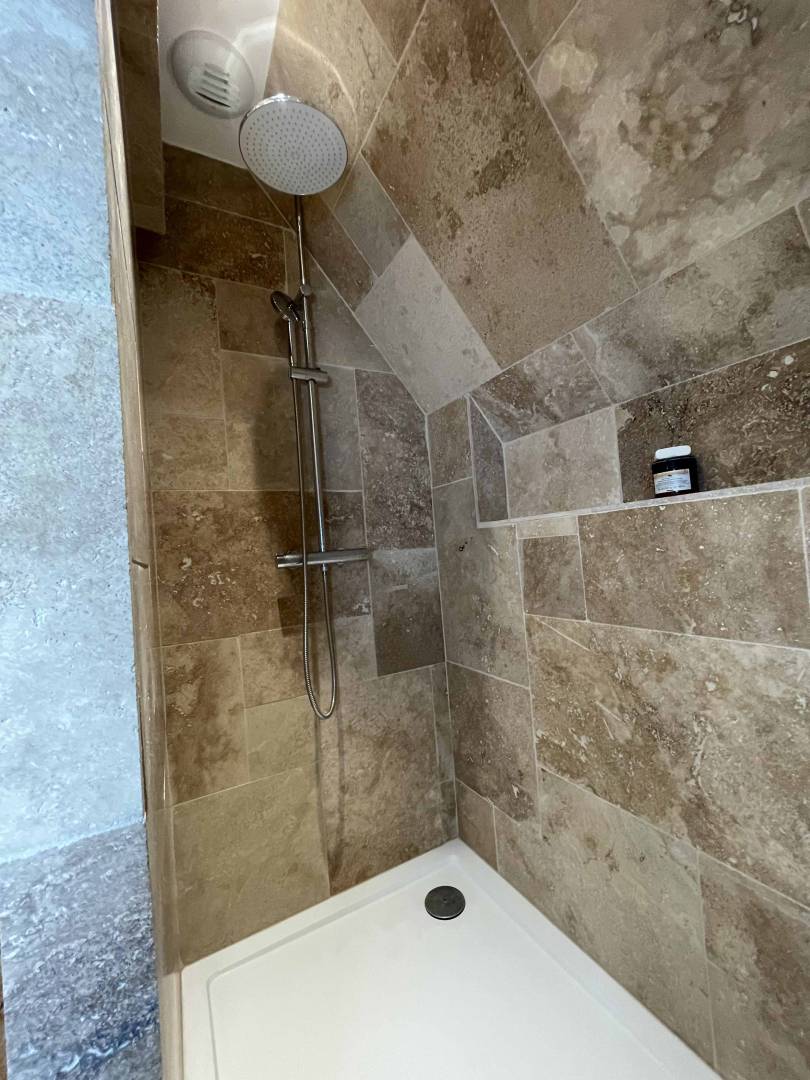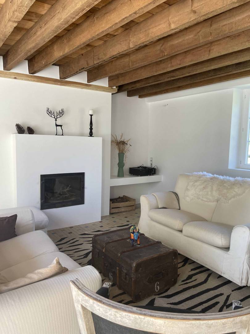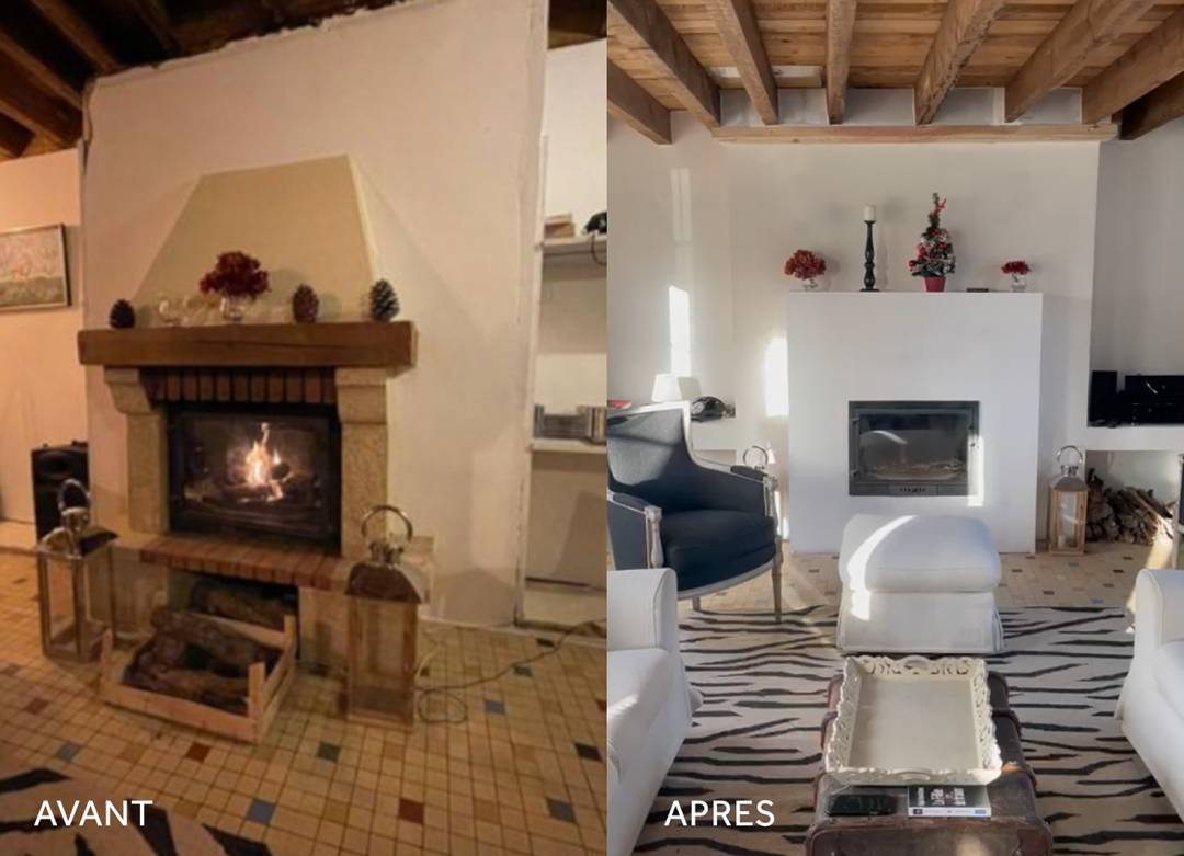 Longère normande : Relooking d'une cheminée et création d'une salle de bains. Conseil Déco, liste shopping pour l'ensemble du rez de chaussée.