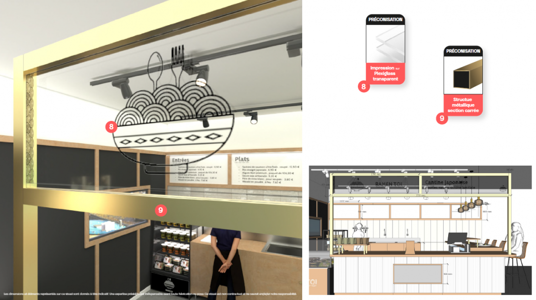 Direction artisitique autour d'un commerce de bouche. Restaurant ouvert avec pour travail de conception : design d'espace, graphisme, identité visuelle, signalétique et décoration. Fourniture de préconisations techniques ainsi que de fichiers vectoriels exploitables (signalétique) pour passage auprès d'un prestataire externe.