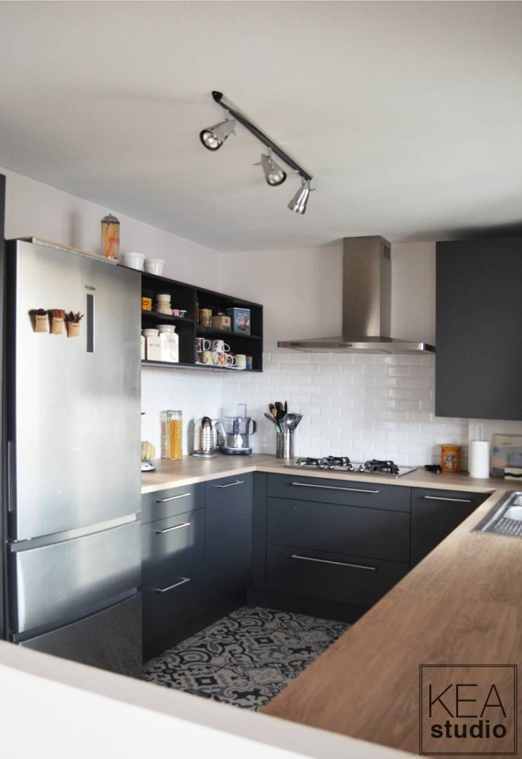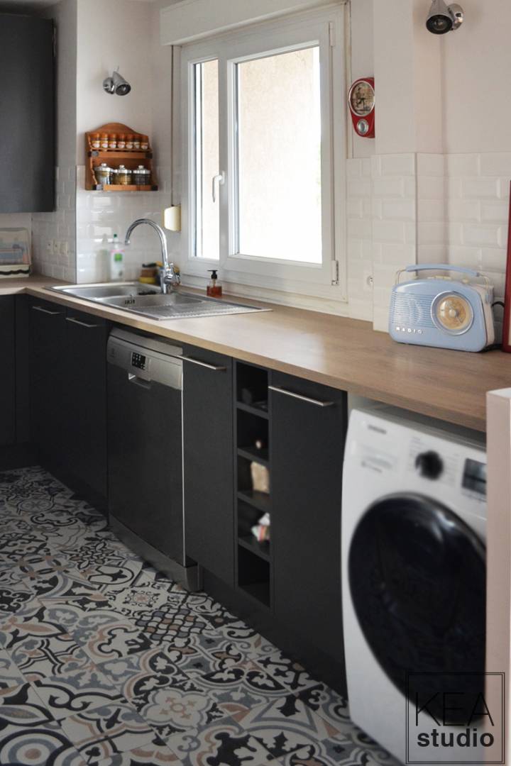 Cet appartement a un fort potentiel. Cependant, certaines cloisons non judicieuses le rendait difficile à vivre, notamment dû à ses longs couloirs et à des espaces non utilisables. Nous avons ainsi retravaillé la cuisine en l'ouvrant sur le séjour. La verrière permet de réduire les nuisances sonores et d'apporter de la modernité à l'ensemble. Nous en avons également profité pour refaire les sols, pour inclure des rangements sur-mesure et adapter les réseaux électriques au nouvel aménagement.