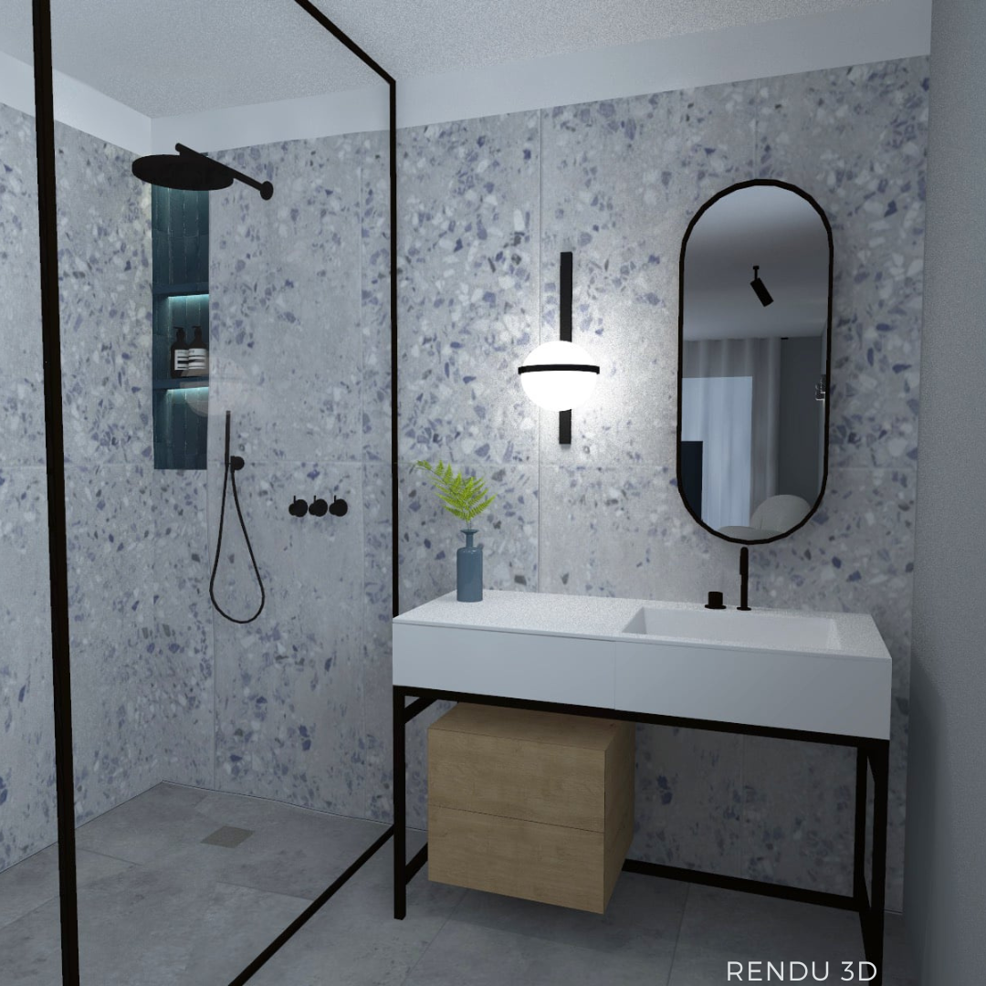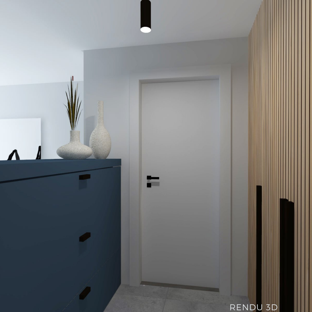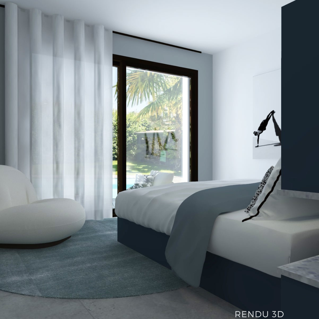 __ Projet CEL 🦓 ▶️ Phase Avant projet 🔍zoom sur la suite parentale Rendu 3D Création d'une suite parentale dans un espace initialement séjour cuisine secondaire.