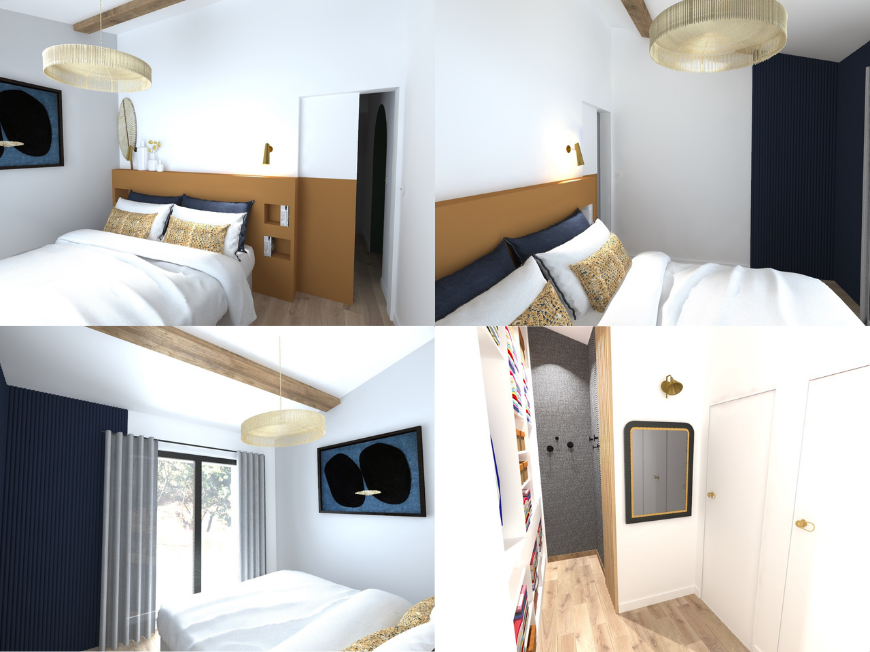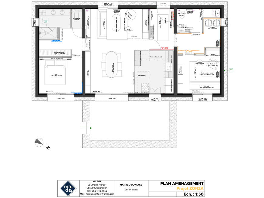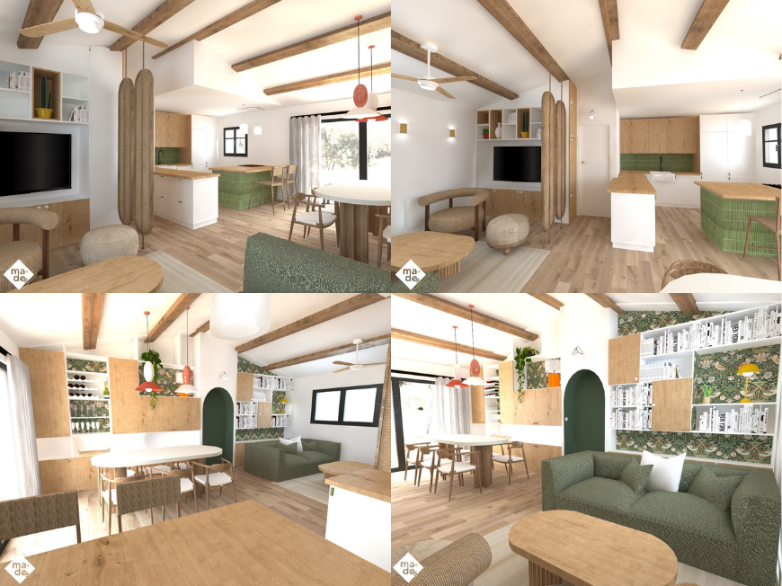 __ Projet ZONZ 🐐 ▶️ Phase Avant projet Rendu 3D, planche inspiration et plan APS Rénovation complete d'une bergerie en Corse. Un intérieur fonctionnel et élégant. Cahier des charges spatial : -une suite parentale -un séjour ouvert cuisine / salle à manger / salon -une entrée indépendante -cabinet psychologique avec WC. -Accès PMR pour la partie professionnelle Contexte général : -Optimisation des espaces -Le client aime l'artiste William moris mais cherche une approche plus contemporaine (shigeru ban). -Travail sur des murs servants avec mobilier sur mesure -Bureau, le client cherche à faire un cabinet de curiosité sur le thème des voyages/exploration