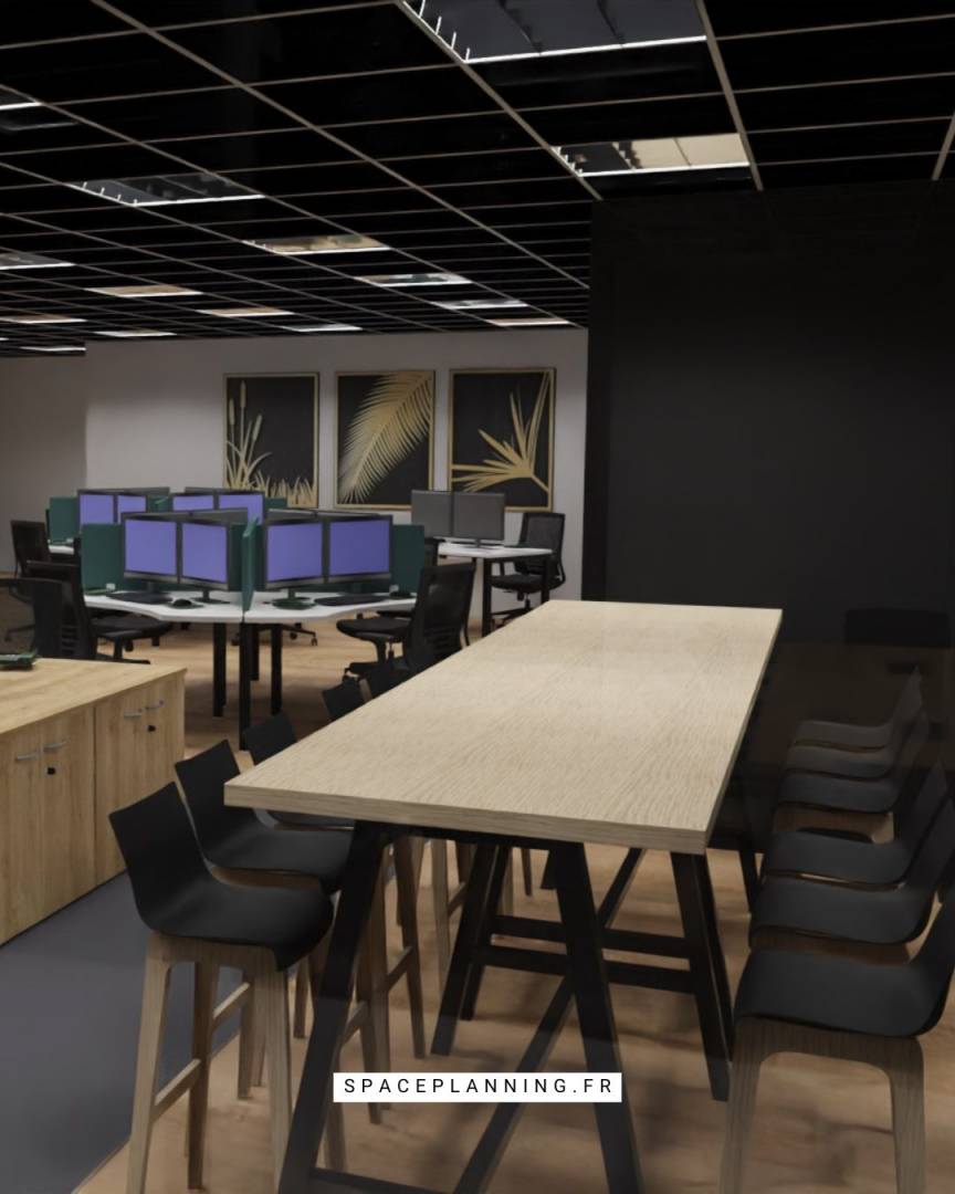 Space Planning a accompagné une agence de communication dans la rénovation de ces locaux. Les espaces concernés : 1 bureau de direction, 2 open space, 1 salle de réunion, 1 espace restauration