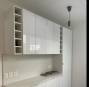 Style épuré et minimaliste pour cette cuisine bénéficiant désormais d'une ouverture sur le salon.