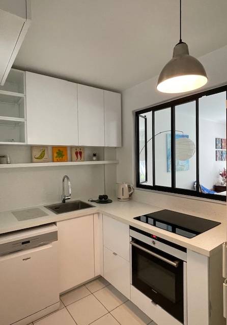 Rénovation de cuisine avec création de verrière ouverte sur le séj́our
